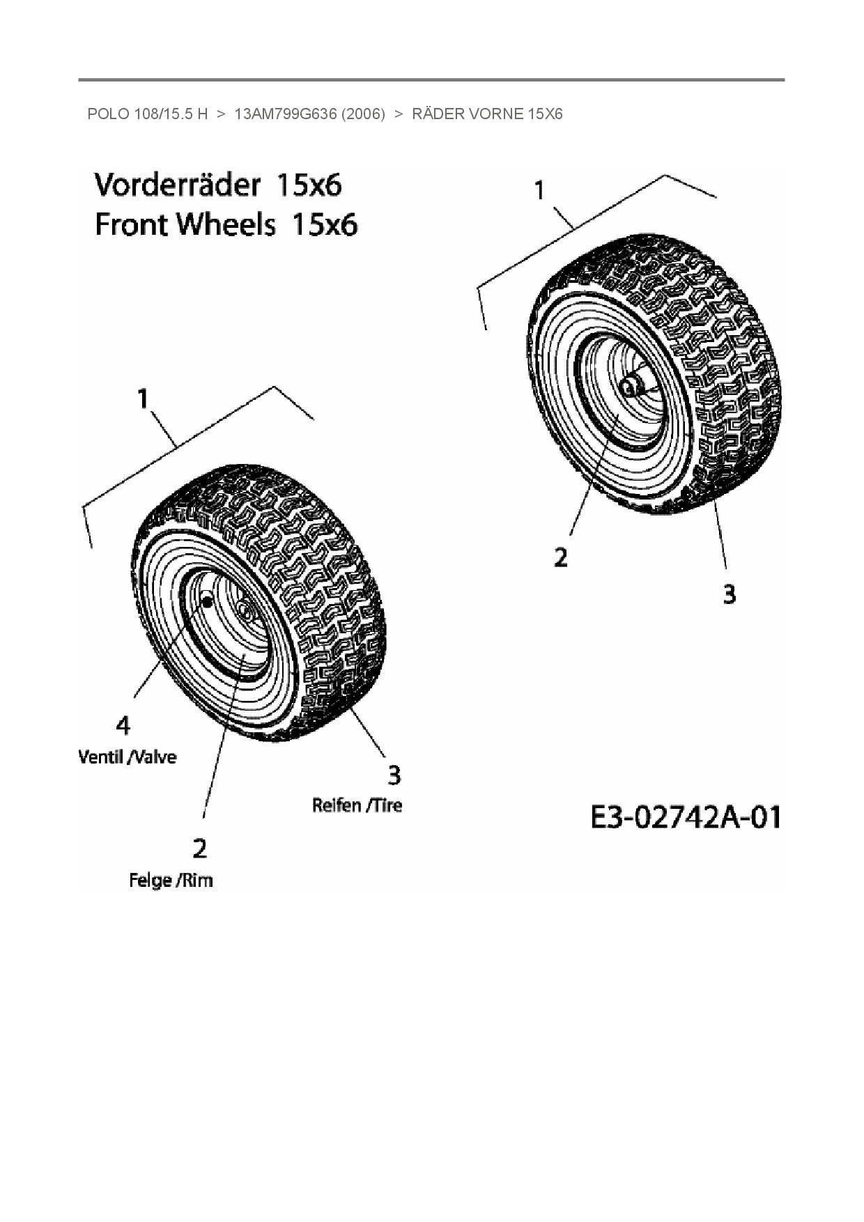 Download Ersatzteil-Zeichnung Oleo-Mac Polo 108/15.5 H Zeichnung Räder vorne 15x6 (PDF-Format)
