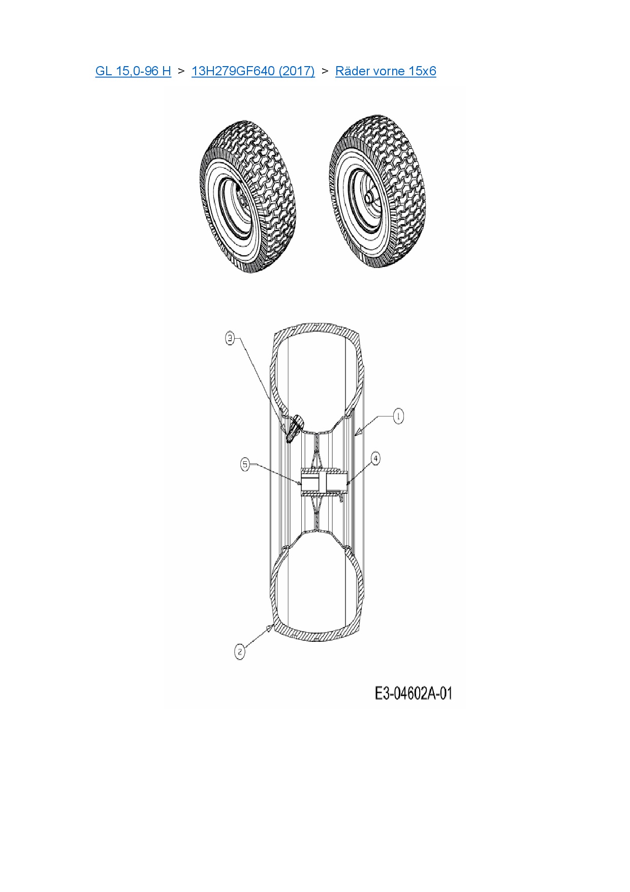 Ersatzteile für Rasentraktor Gartenland GL 15,0-96 H aus der Zeichnung Räder vorne 15x6: