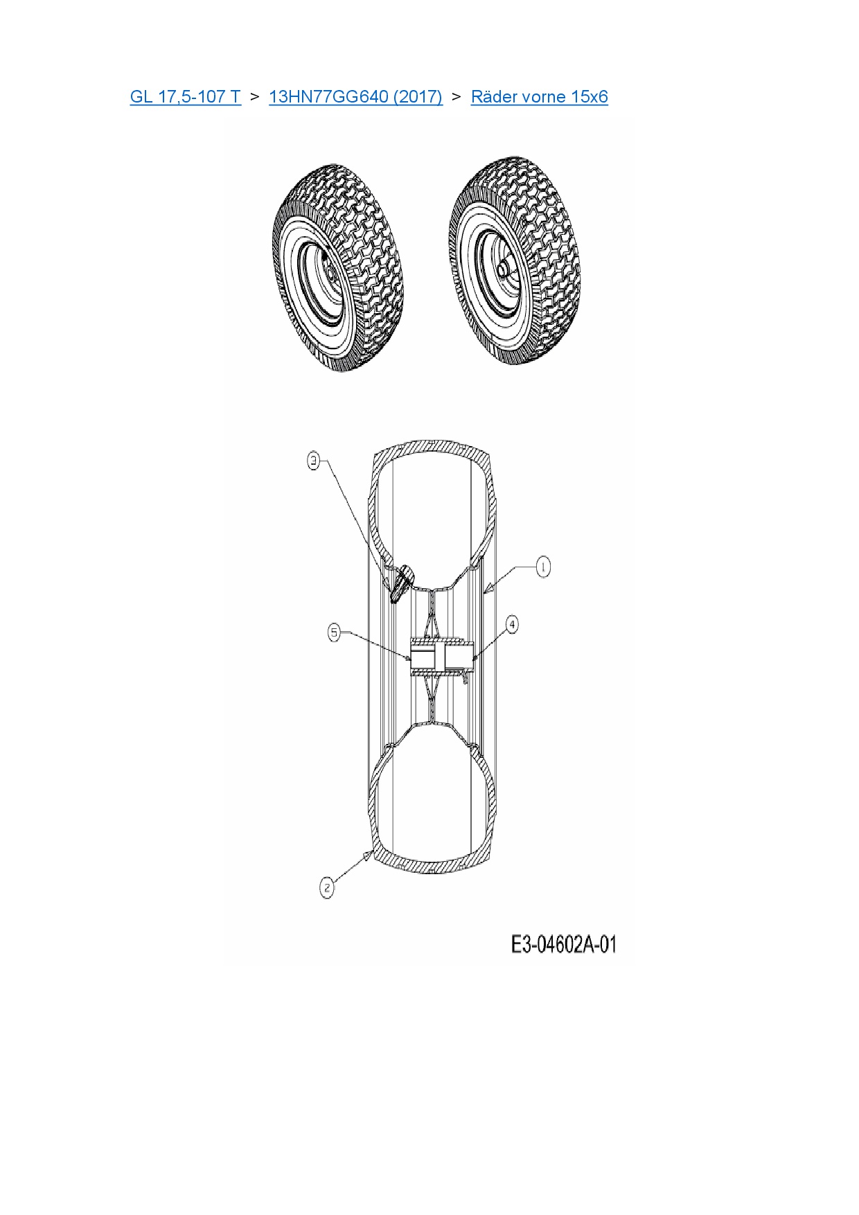 Ersatzteile für Rasentraktor Gartenland GL 17,5-107 T aus der Zeichnung Räder vorne 15x6: