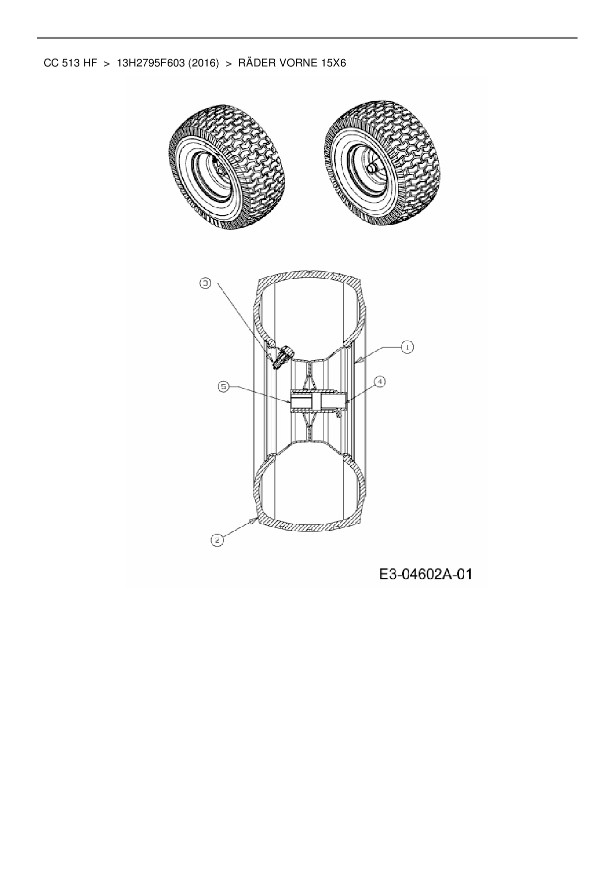 Ersatzteile für Rasentraktor Cub Cadet CC 513 HF aus der Zeichnung Räder vorne 15x6: