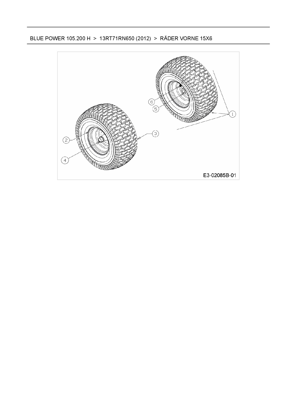 Ersatzteile für Rasentraktor Wolf-Garten Blue Power 105.200 H aus der Zeichnung Räder vorne 15x6: