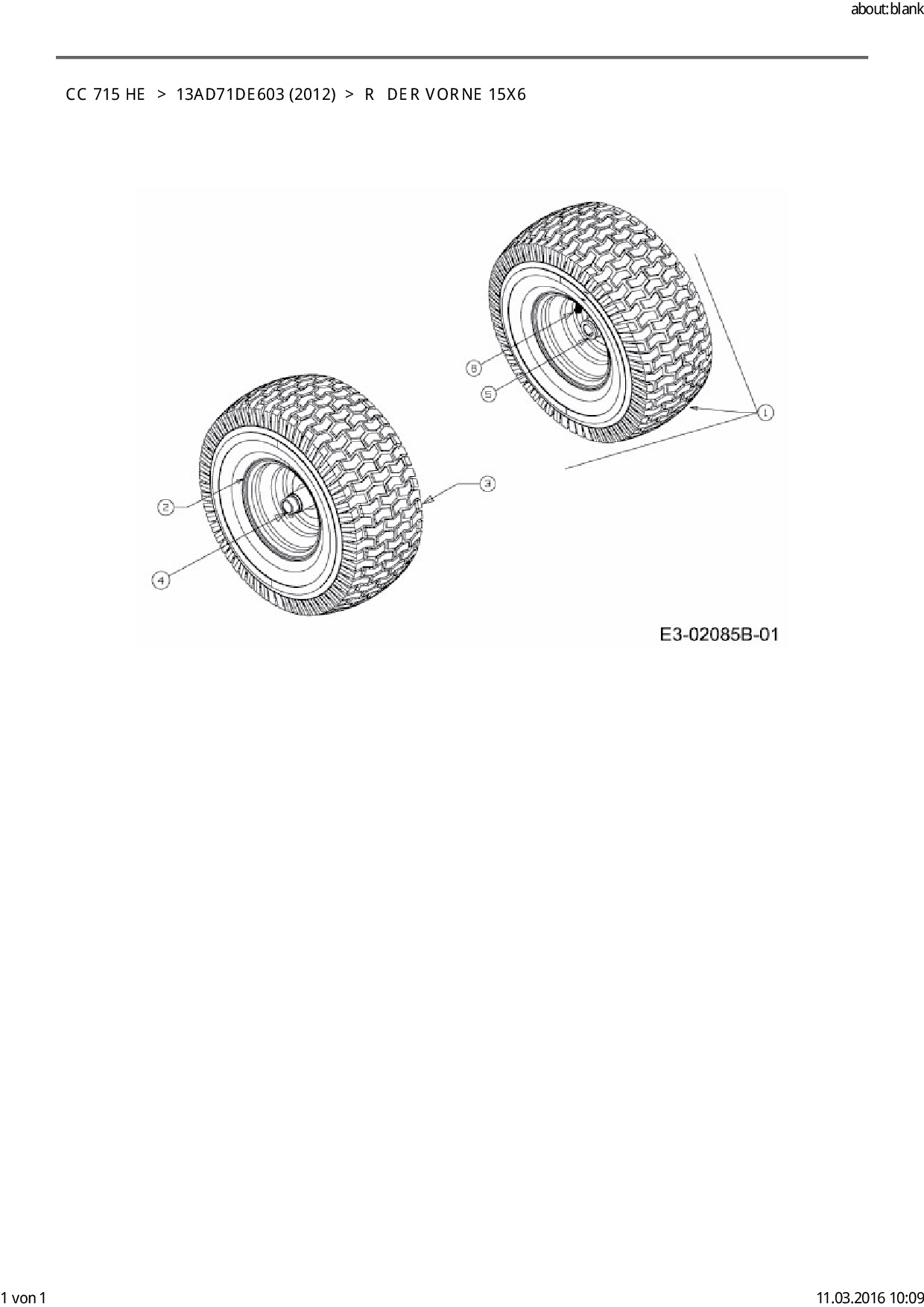 Ersatzteile für Rasentraktor Cub Cadet CC 715 HE aus der Zeichnung Räder vorne 15x6: