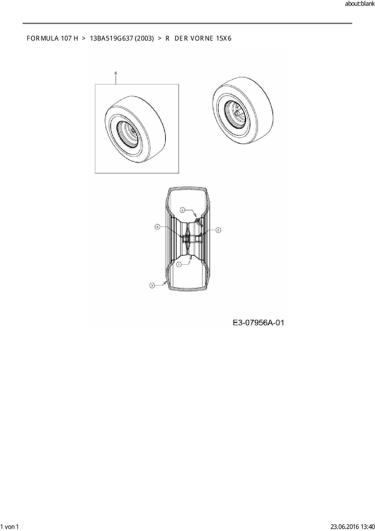 Ersatzteile für Rasentraktor EFCO Formula 107 H aus der Zeichnung Räder vorne 15x6: