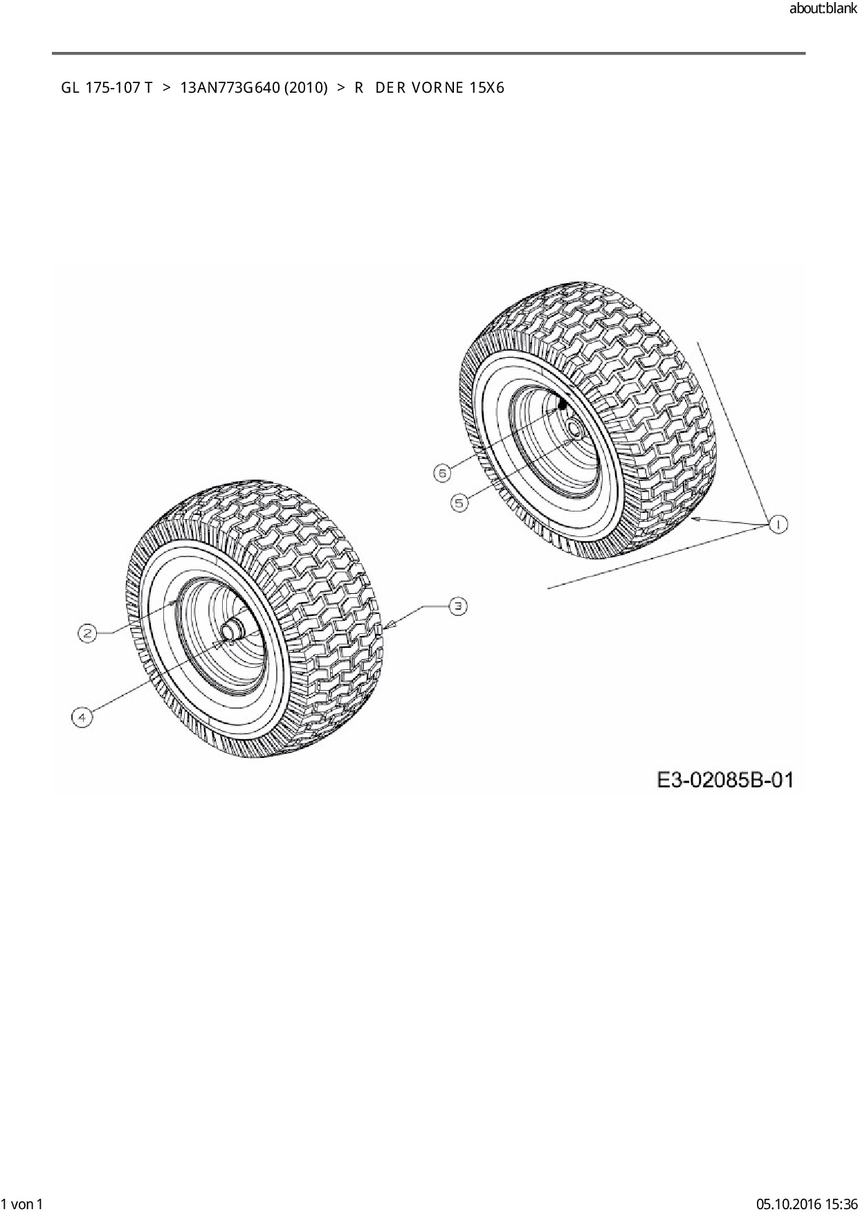 Ersatzteile für Rasentraktor Gartenland GL 175-107 T aus der Zeichnung Räder vorne 15x6: