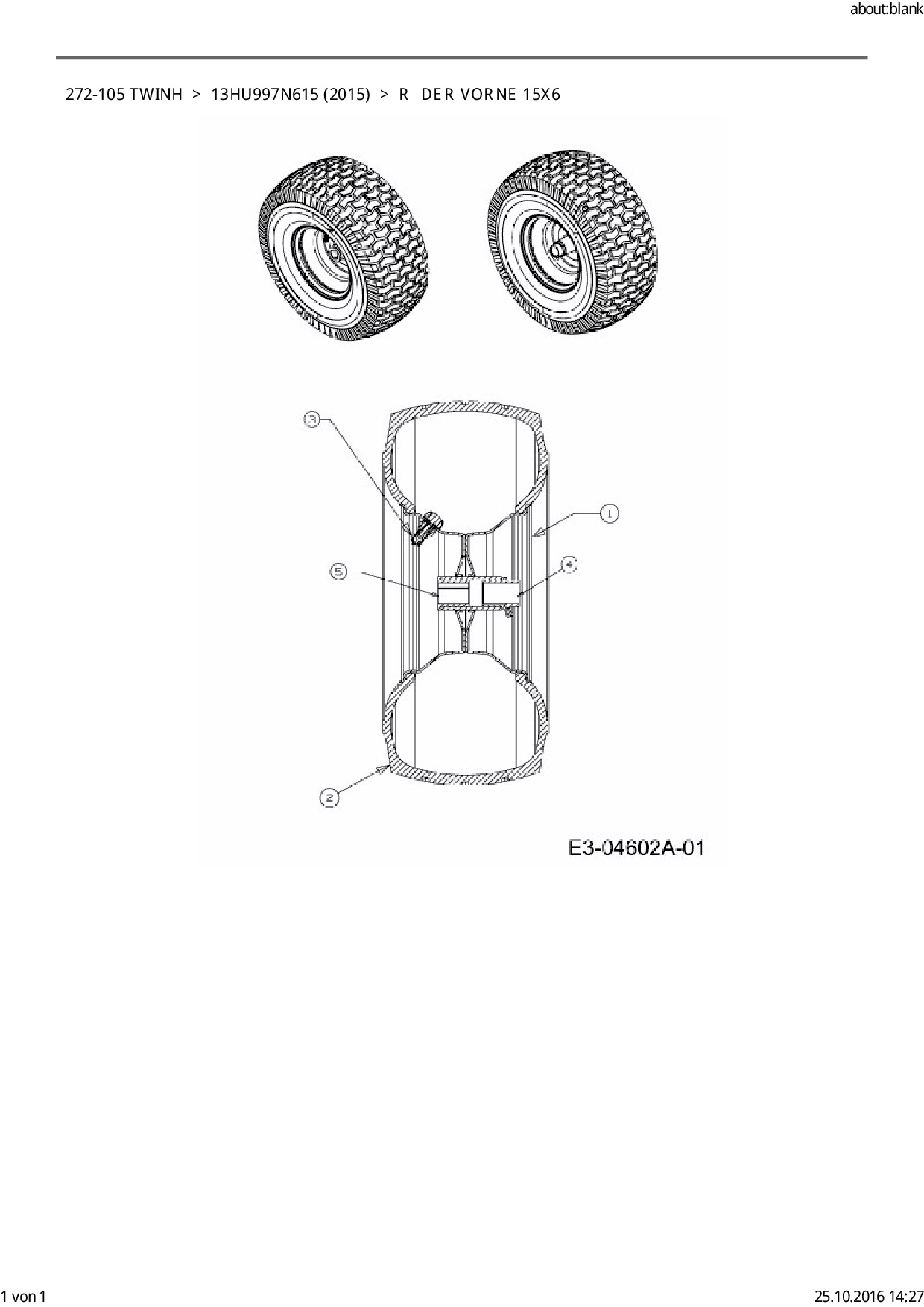 Ersatzteile für Rasentraktor Black Edition 272-105 TwinH aus der Zeichnung Räder vorne 15x6: