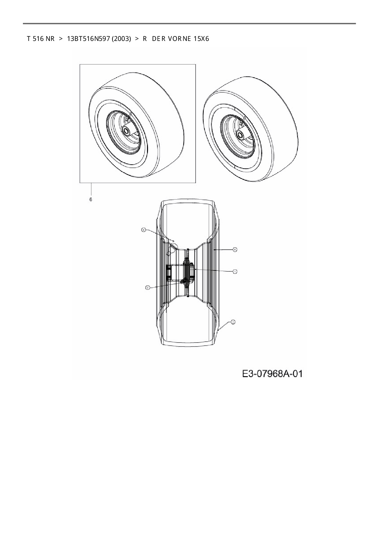 Ersatzteile für Rasentraktor Columbia T 516 NR aus der Zeichnung Räder vorne 15x6: