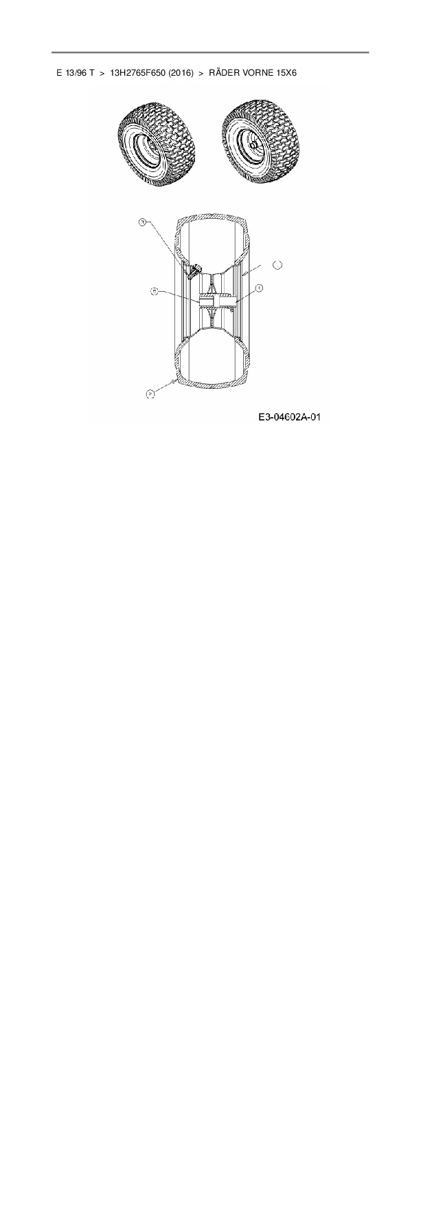 Ersatzteile für Rasentraktor Wolf-Garten E 13/96 T aus der Zeichnung Räder vorne 15x6: