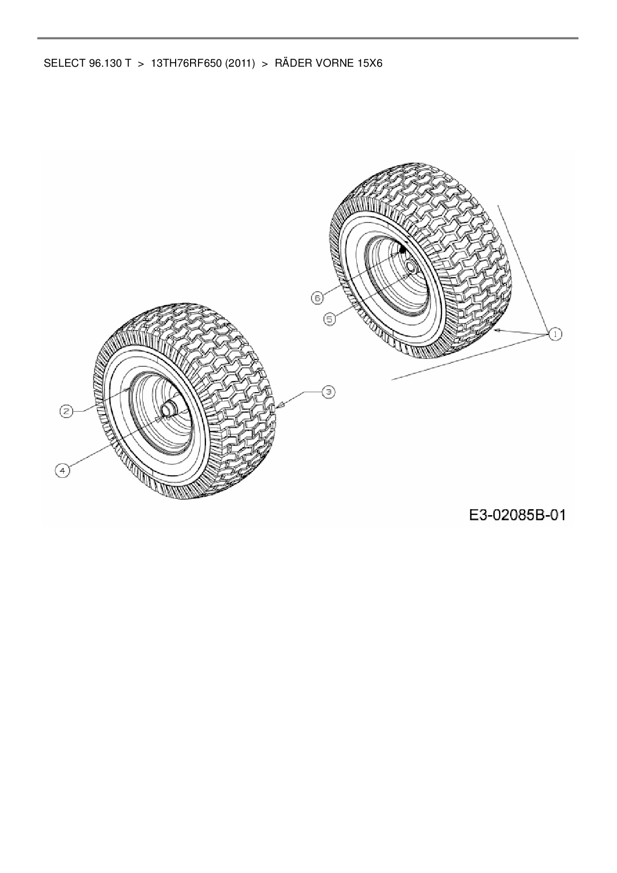 Ersatzteile für Rasentraktor Wolf-Garten Select 96.130 T aus der Zeichnung Räder vorne 15x6: