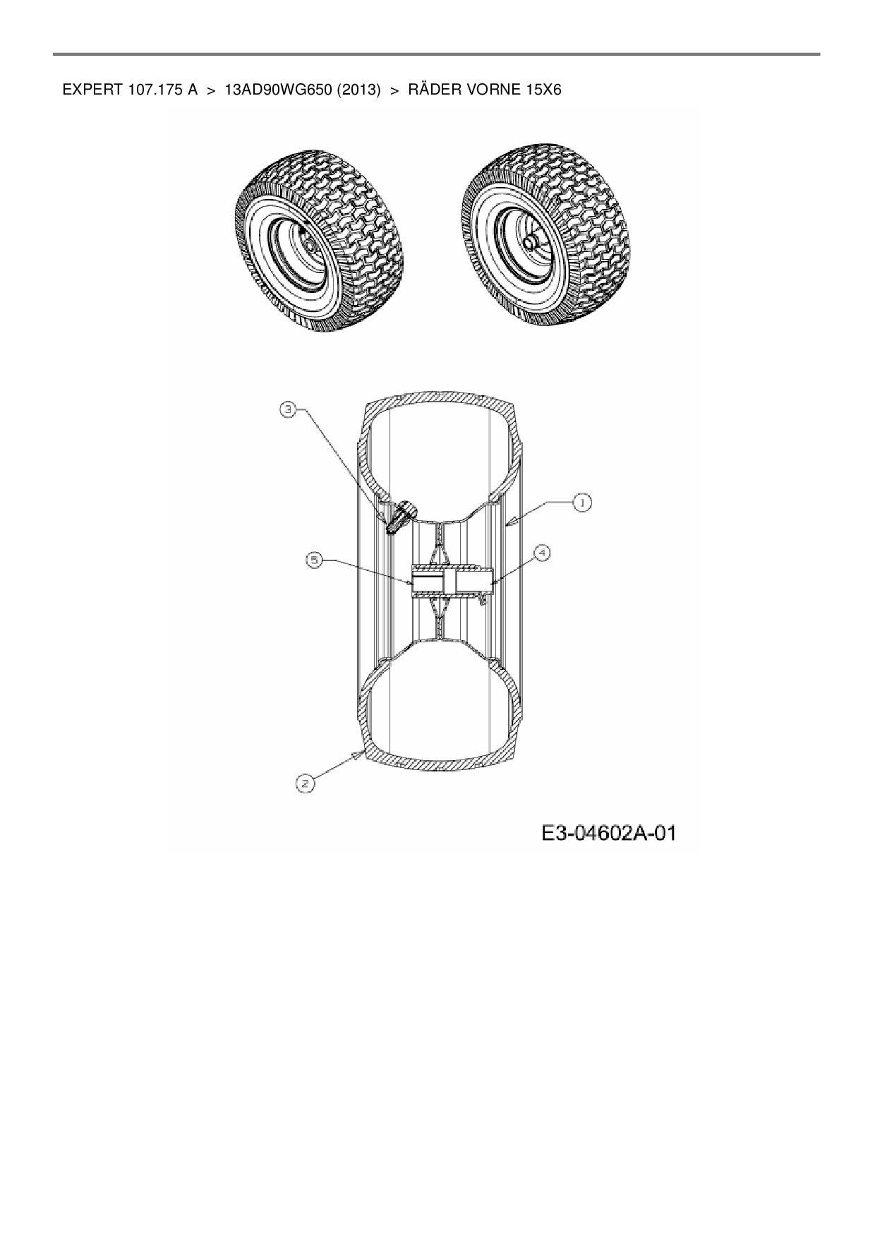 Ersatzteile für Rasentraktor Wolf-Garten Expert Expert 107.175 A aus der Zeichnung Räder vorne 15x6: