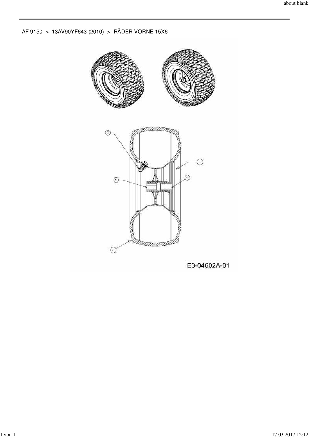Ersatzteile für Rasentraktor Yard-Man AF 9150 aus der Zeichnung Räder vorne 15x6: