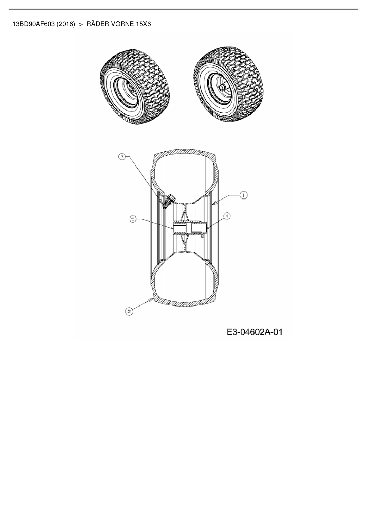 Ersatzteile für Rasentraktor Cub Cadet CC 1016 AF aus der Zeichnung Räder vorne 15x6:
