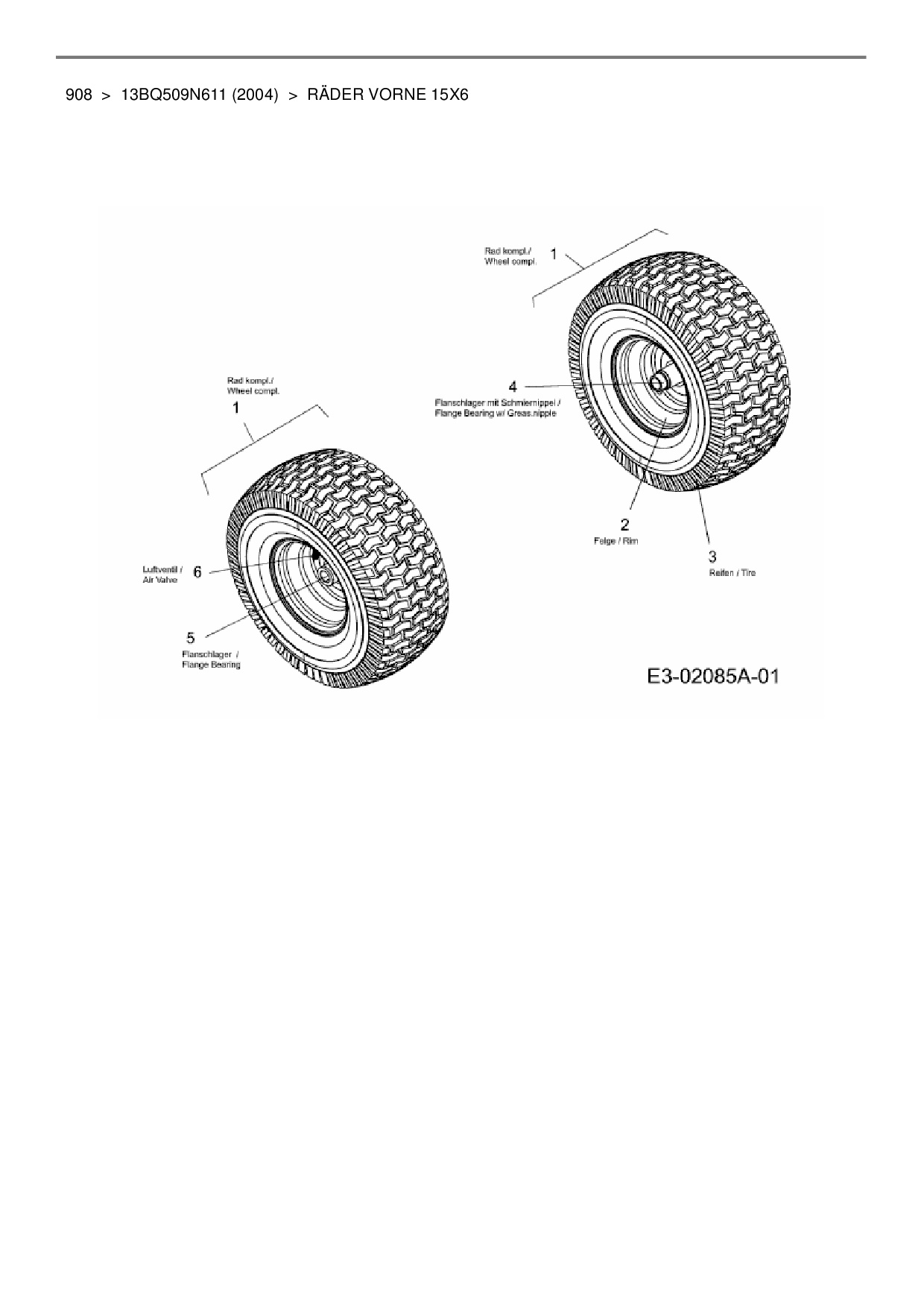 Ersatzteile für Rasentraktor Lawnflite 908 aus der Zeichnung Räder vorne 15x6:
