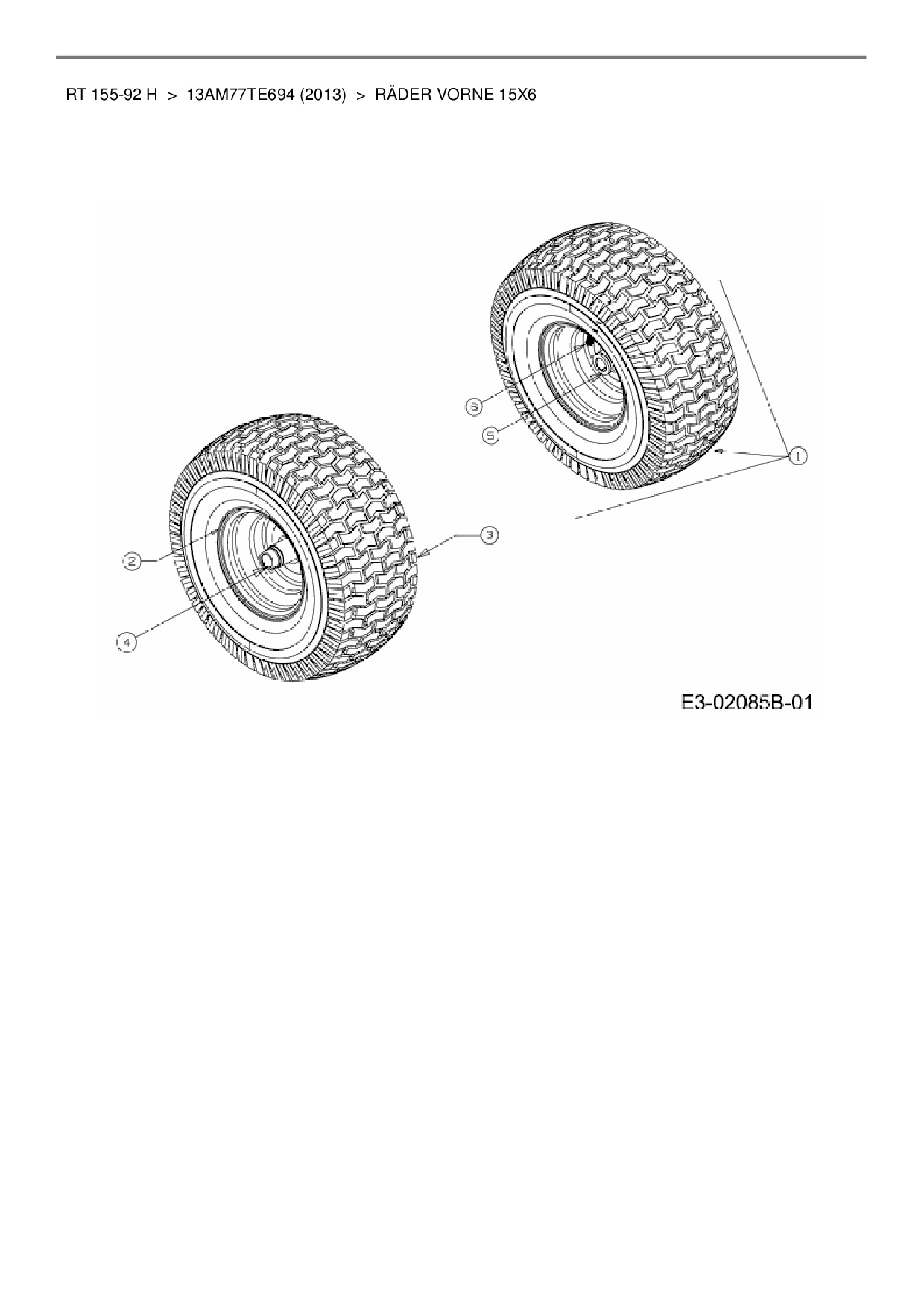 Ersatzteile für Rasentraktor Lux Tools RT 155-92 H aus der Zeichnung Räder vorne 15x6: