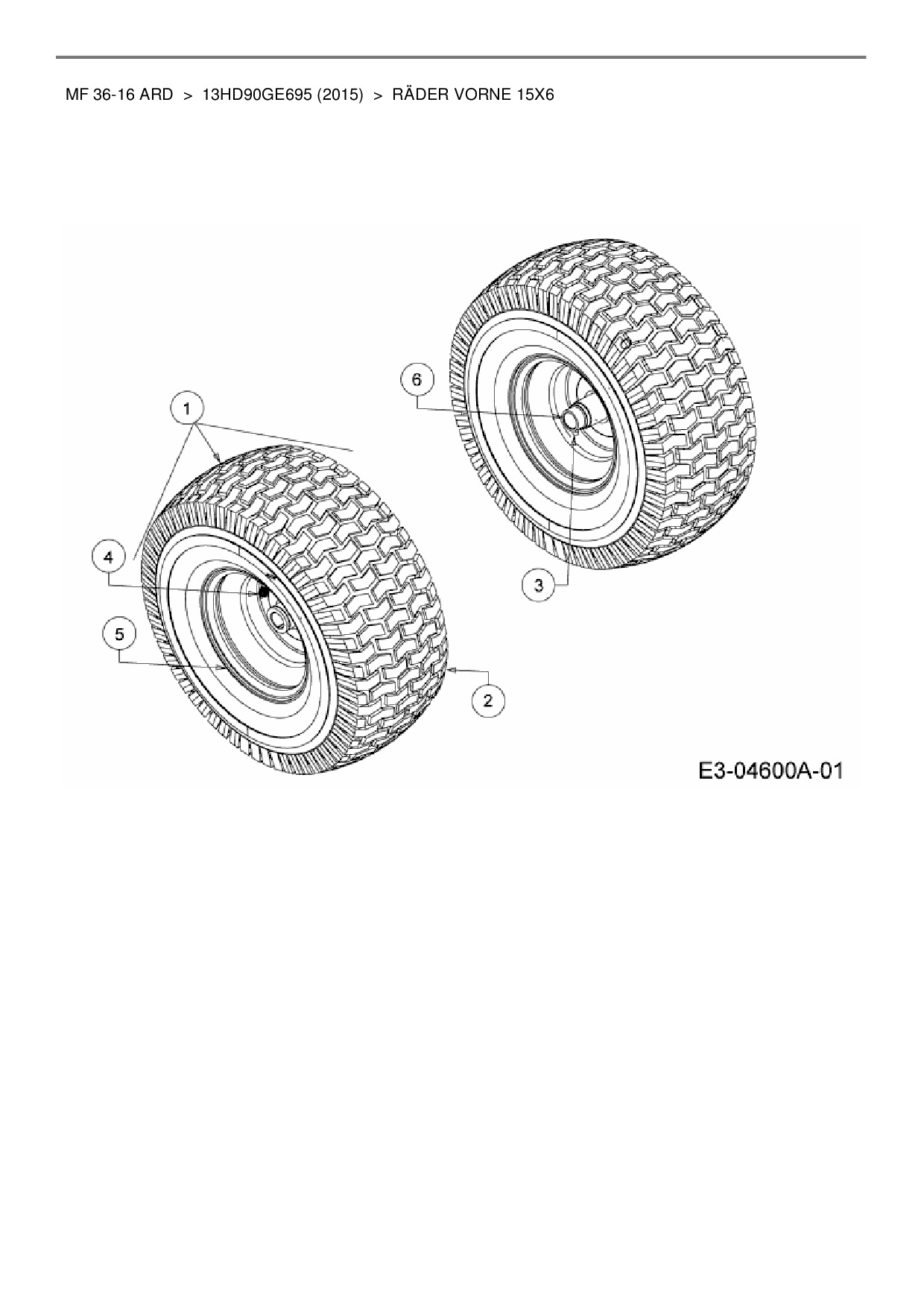 Ersatzteile für Rasentraktor Massey Ferguson MF 36-16 ARD aus der Zeichnung Räder vorne 15x6: