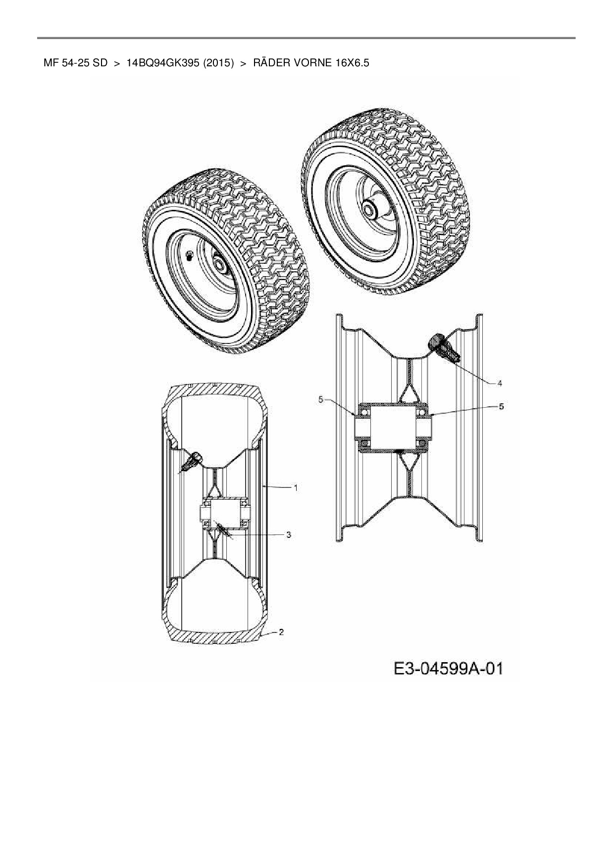 Ersatzteile für Gartentraktor Massey Ferguson MF 54-25 SD aus der Zeichnung Räder vorne 16x6.5: