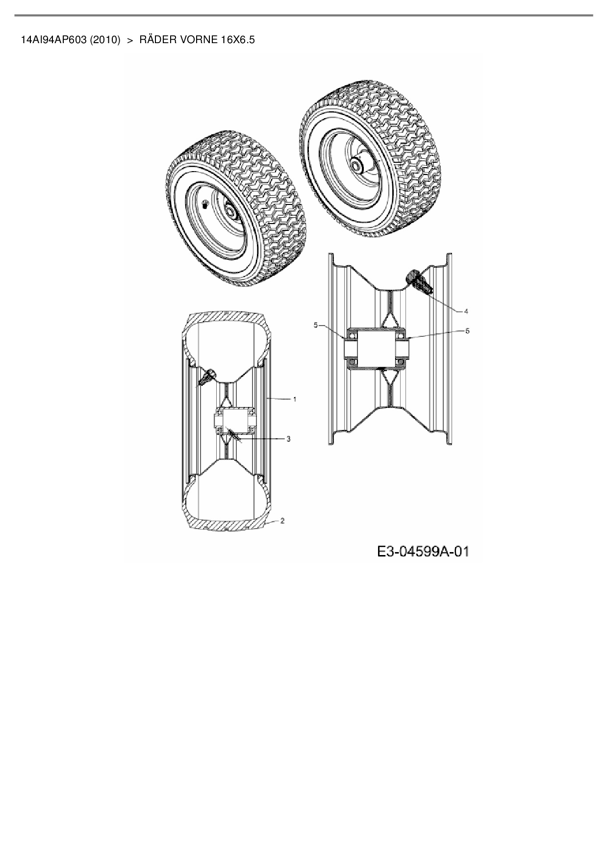 Ersatzteile für Gartentraktor Cub Cadet GT 1224 aus der Zeichnung Räder vorne 16x6.5:
