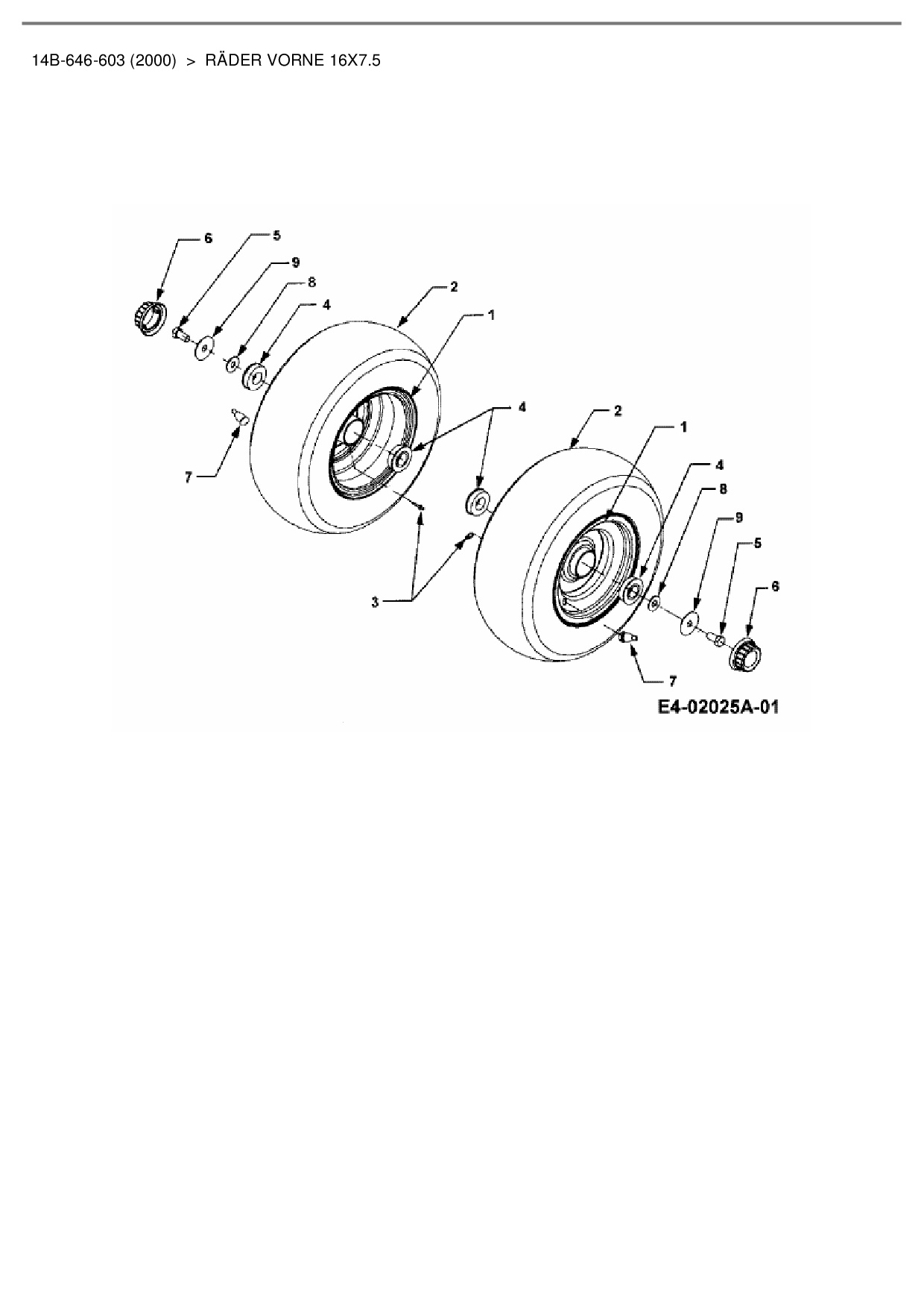 Ersatzteile für Gartentraktor Cub Cadet HDS 3200 aus der Zeichnung Räder vorne 16x7.5: