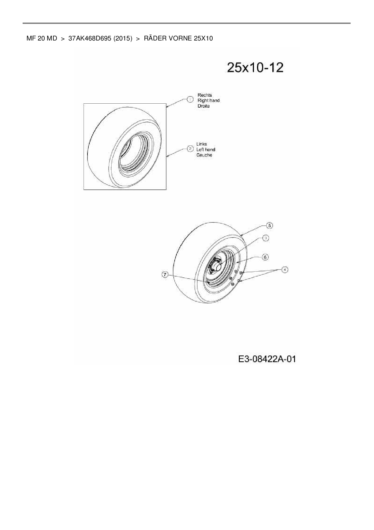 Ersatzteile für Utility Vehicle Massey Ferguson MF 20 MD aus der Zeichnung Räder vorne 25x10: