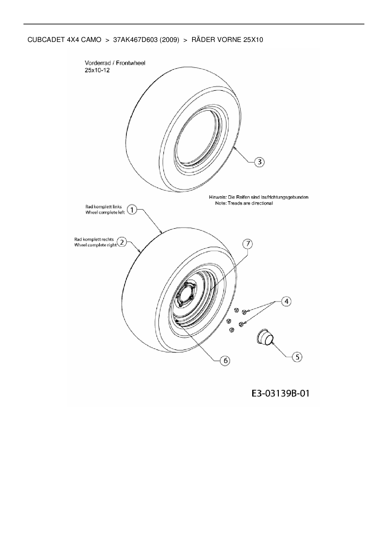 Ersatzteile für Utility Vehicle Cub Cadet CubCadet 4X4 Camo aus der Zeichnung Räder vorne 25x10: