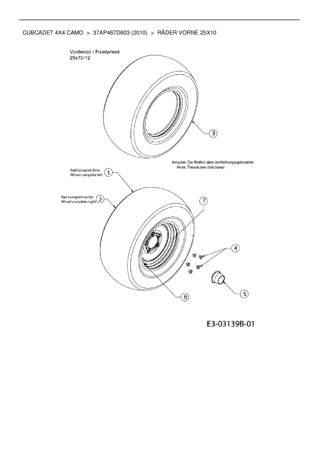 Ersatzteile für Utility Vehicle Cub Cadet CubCadet 4X4 Camo aus der Zeichnung Räder vorne 25x10: