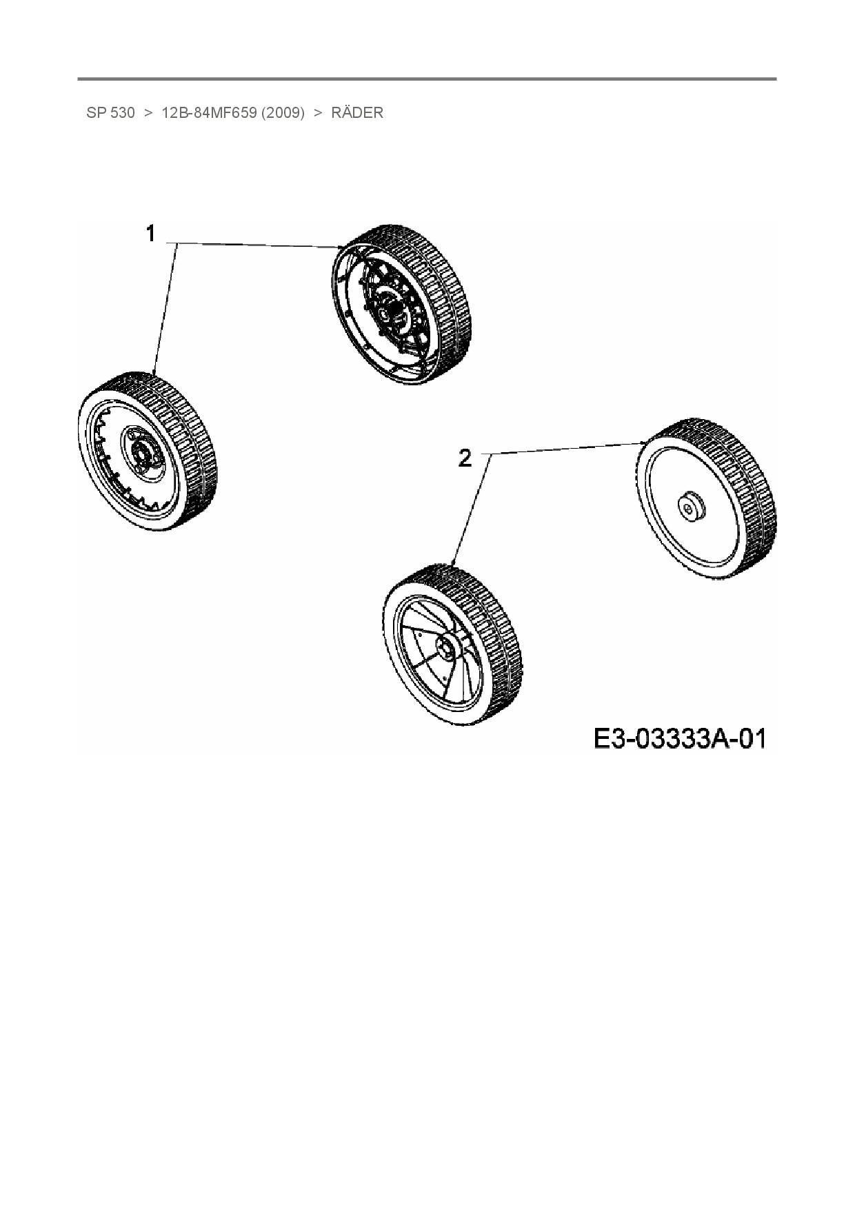 Ersatzteile für Motormäher mit Antrieb Mastercut SP 530 aus der Zeichnung Räder: