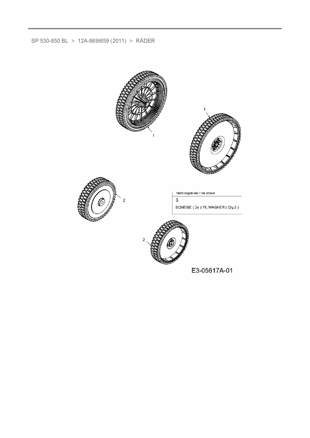 Ersatzteile für Motormäher mit Antrieb Mastercut SP 530-850 BL aus der Zeichnung Räder: