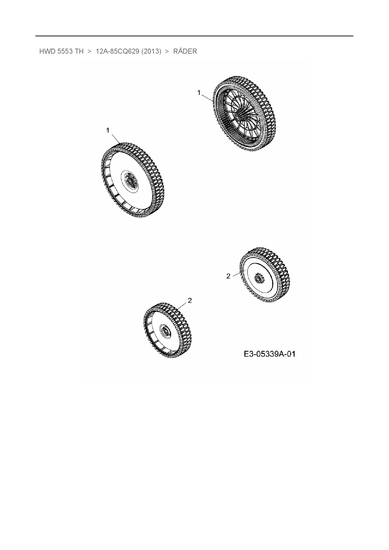Ersatzteile für Motormäher mit Antrieb Mr. Gardener HWD 5553 TH aus der Zeichnung Räder: