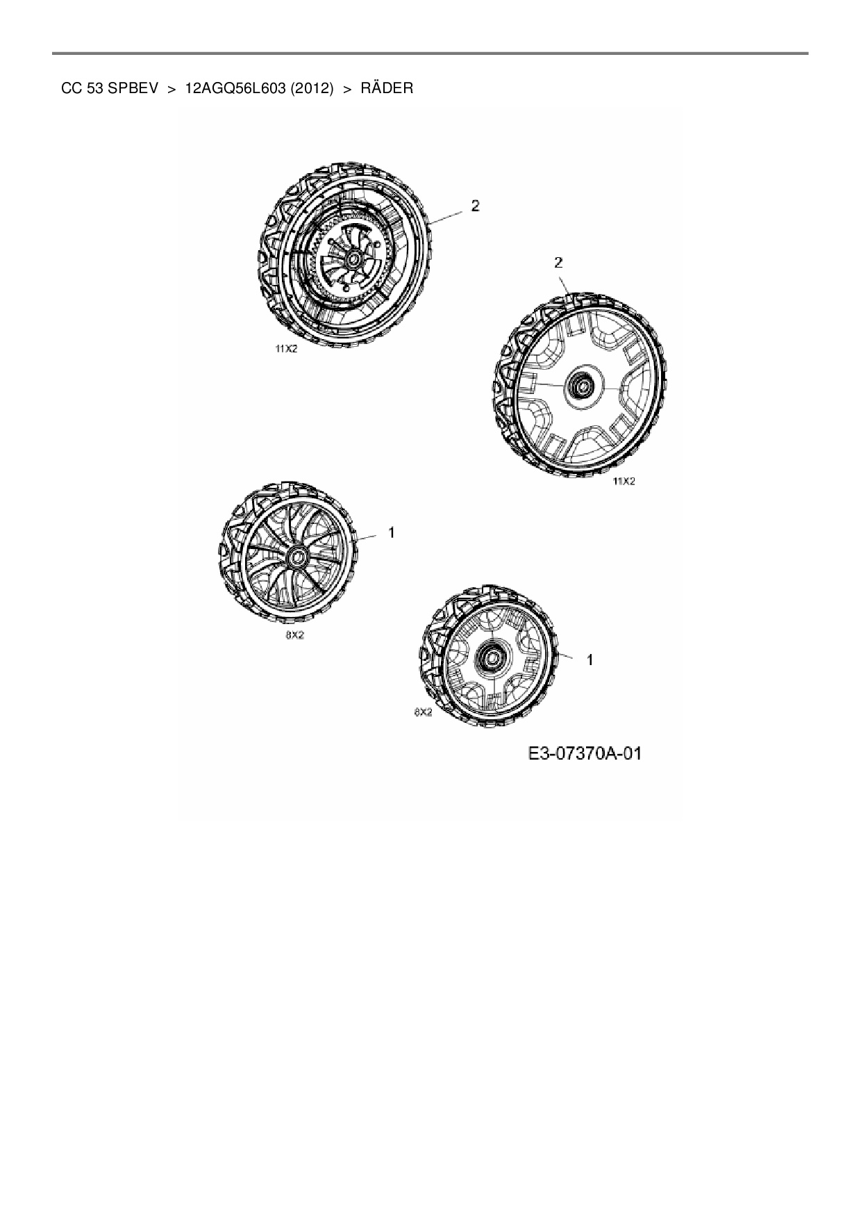 Ersatzteile für Motormäher mit Antrieb Cub Cadet CC 53 SPBEV aus der Zeichnung Räder: