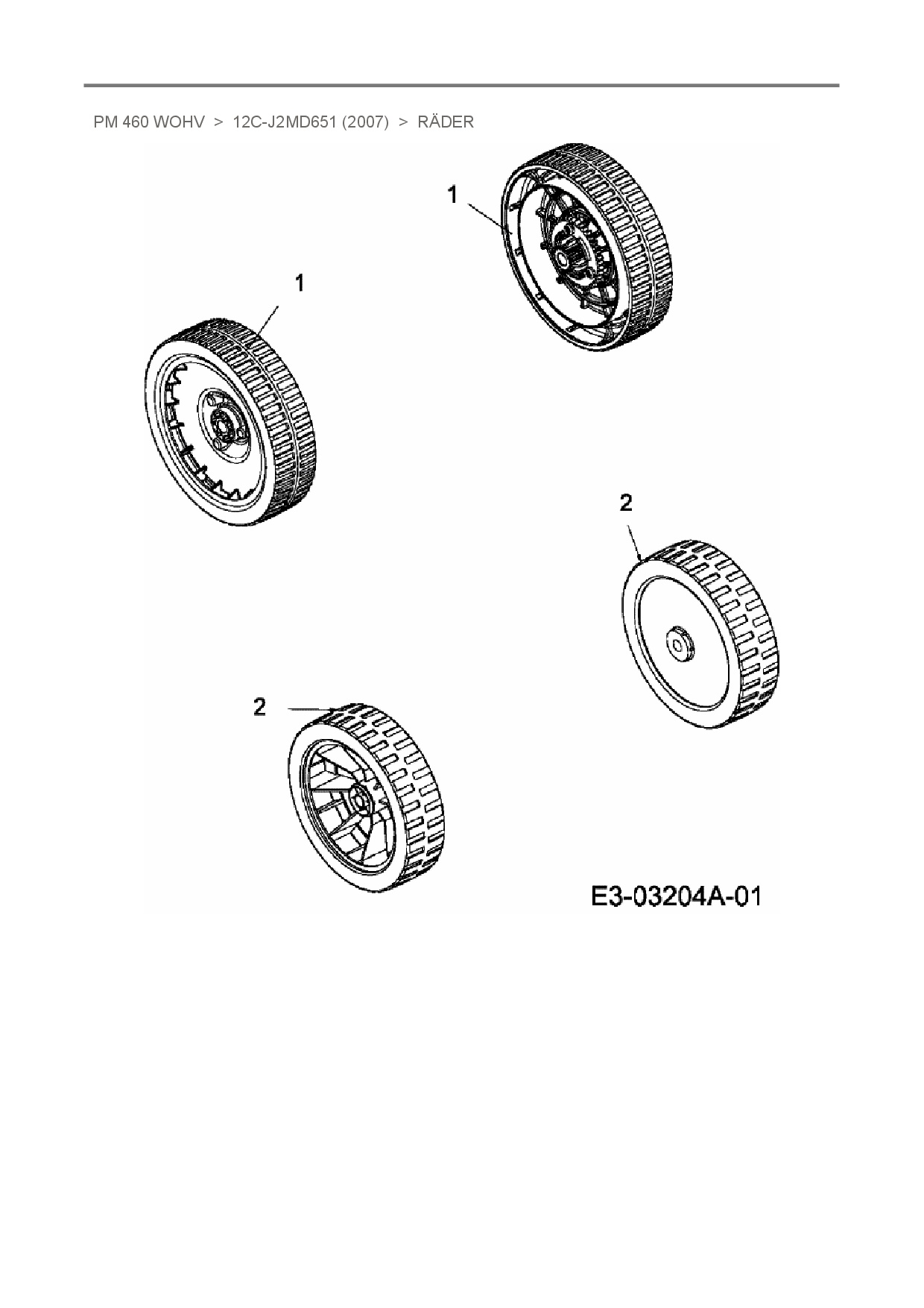Ersatzteile für Motormäher mit Antrieb Terradena PM 460 WOHV aus der Zeichnung Räder:
