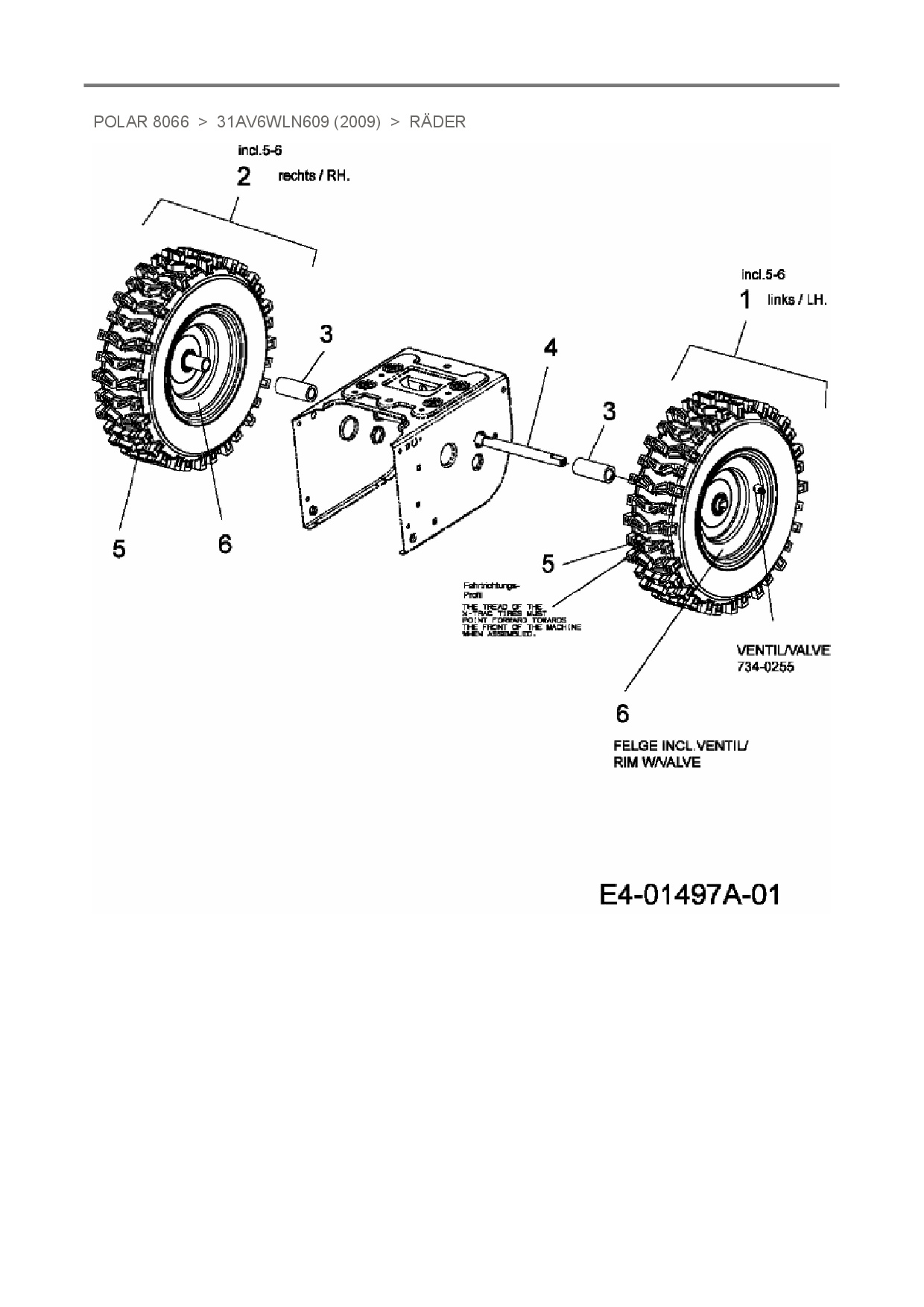 Ersatzteile für Schneefräse Troy-Bilt Polar 8066 aus der Zeichnung Räder:
