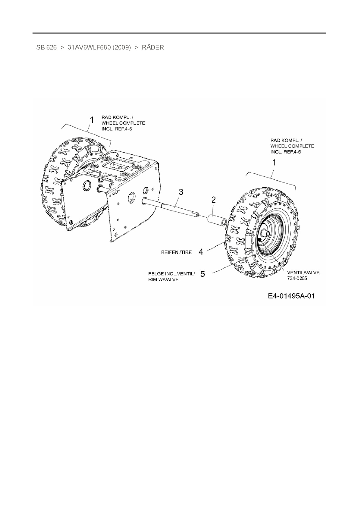 Ersatzteile für Schneefräse White SB 626 aus der Zeichnung Räder: