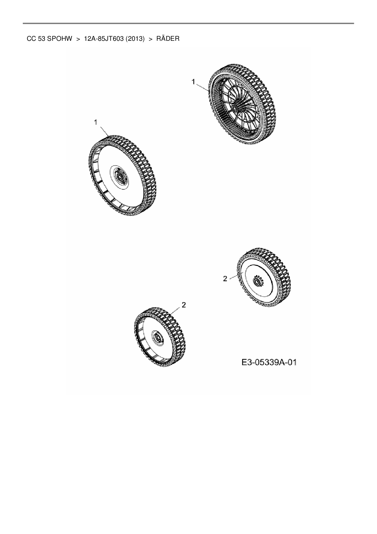 Ersatzteile für Motormäher mit Antrieb Cub Cadet CC 53 SPOHW aus der Zeichnung Räder: