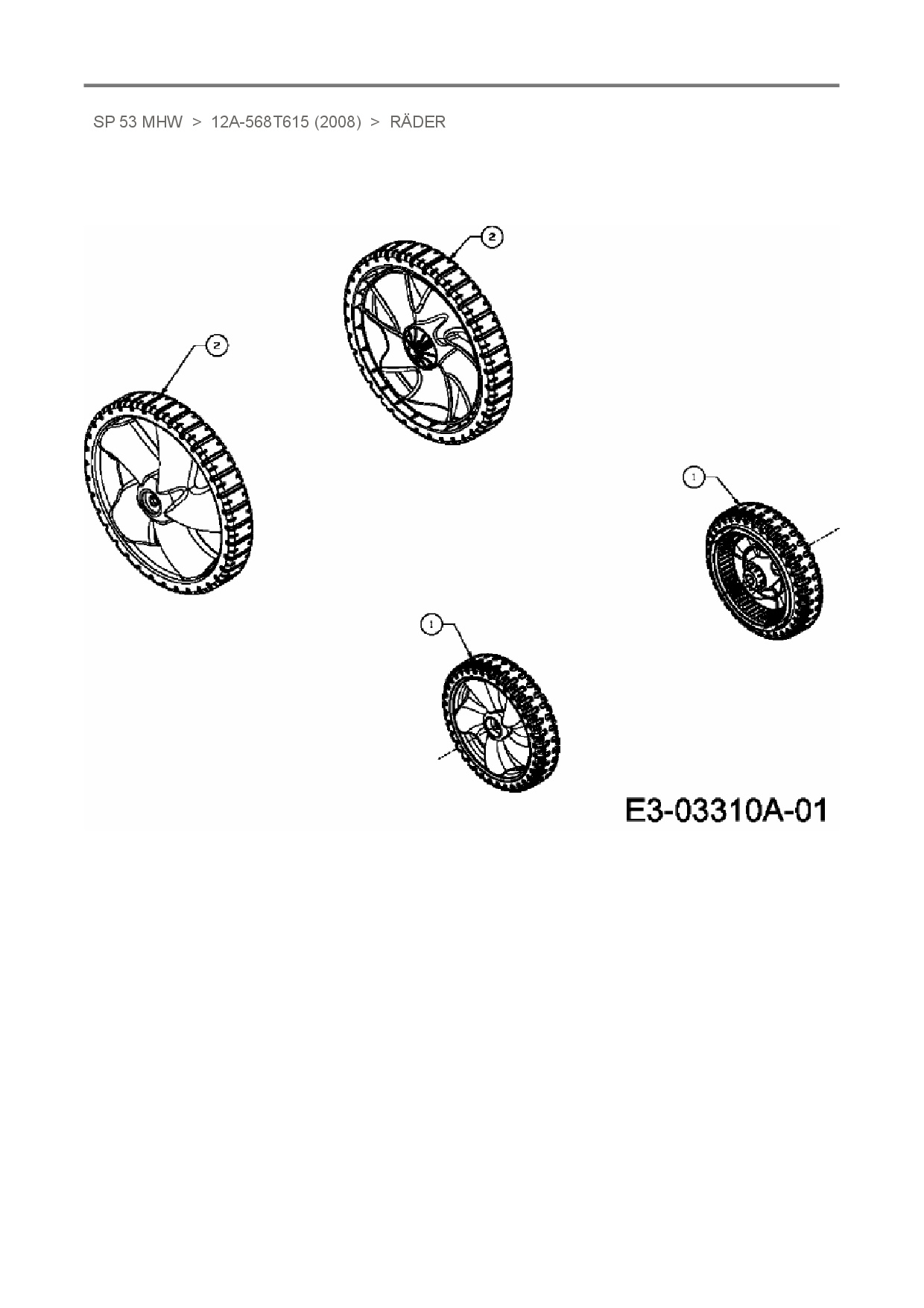 Ersatzteile für Motormäher mit Antrieb MTD SP 53 MHW aus der Zeichnung Räder: