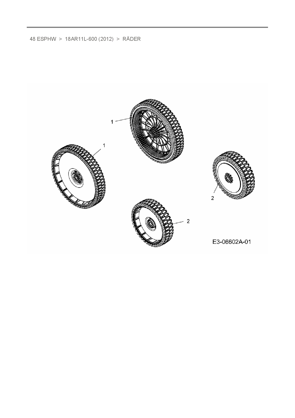 Ersatzteile für Elektromäher mit Antrieb MTD 48 ESPHW aus der Zeichnung Räder: