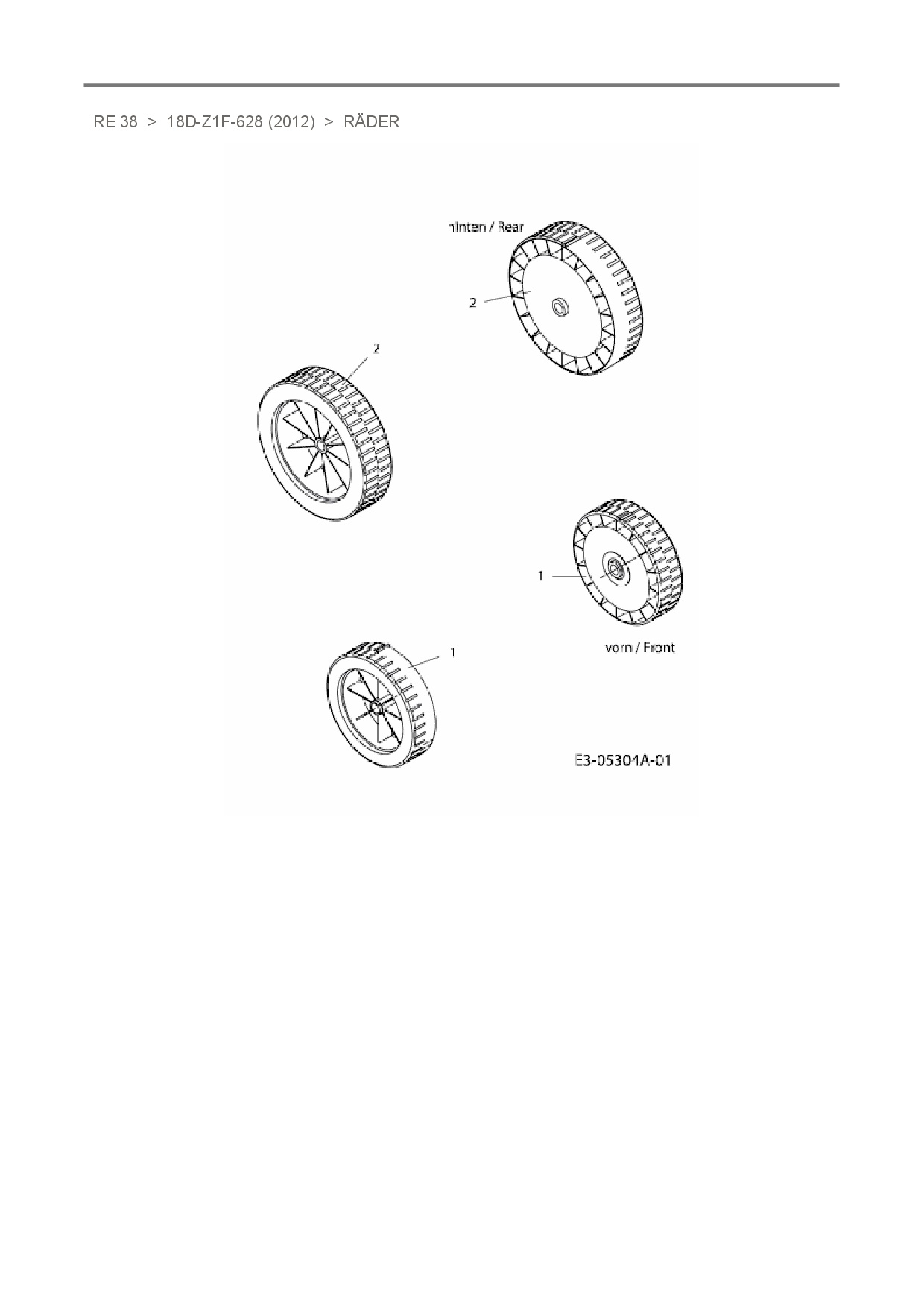 Ersatzteile für Elektromäher Raiffeisen-Markt RE 38 aus der Zeichnung Räder: