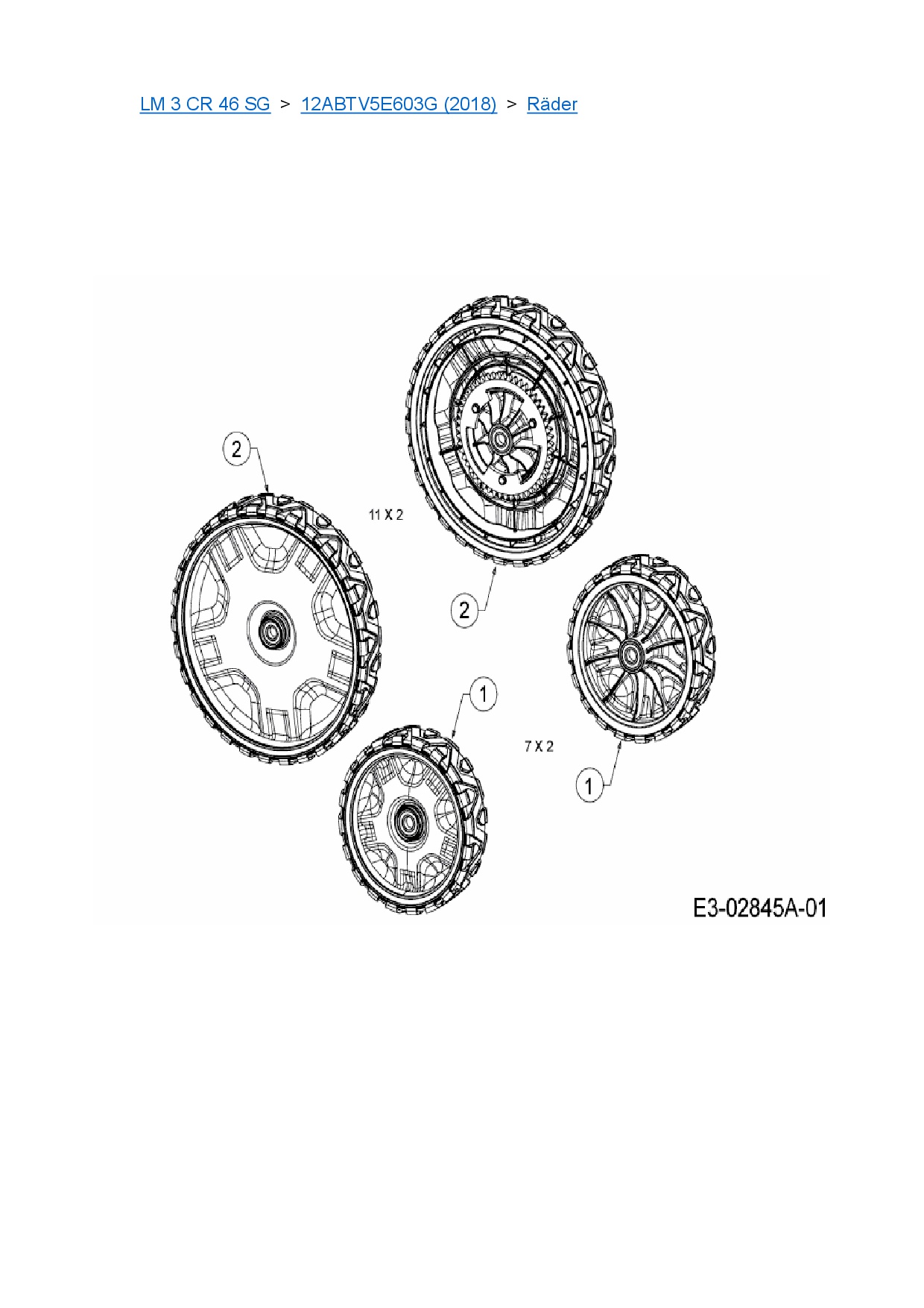 Ersatzteile für Motormäher mit Antrieb Cub Cadet LM 3 CR 46 SG aus der Zeichnung Räder: