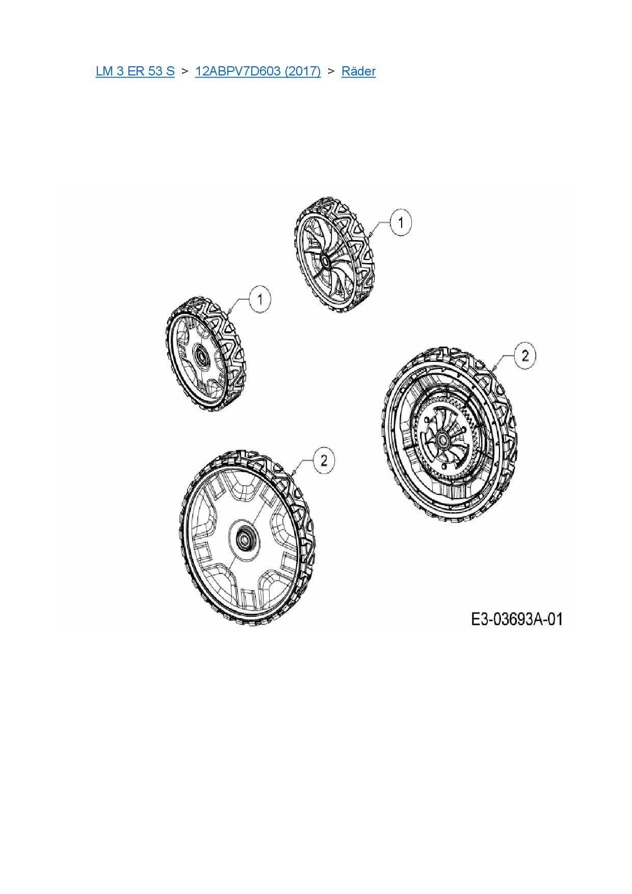 Ersatzteile für Motormäher mit Antrieb Cub Cadet LM 3 ER 53 S aus der Zeichnung Räder: