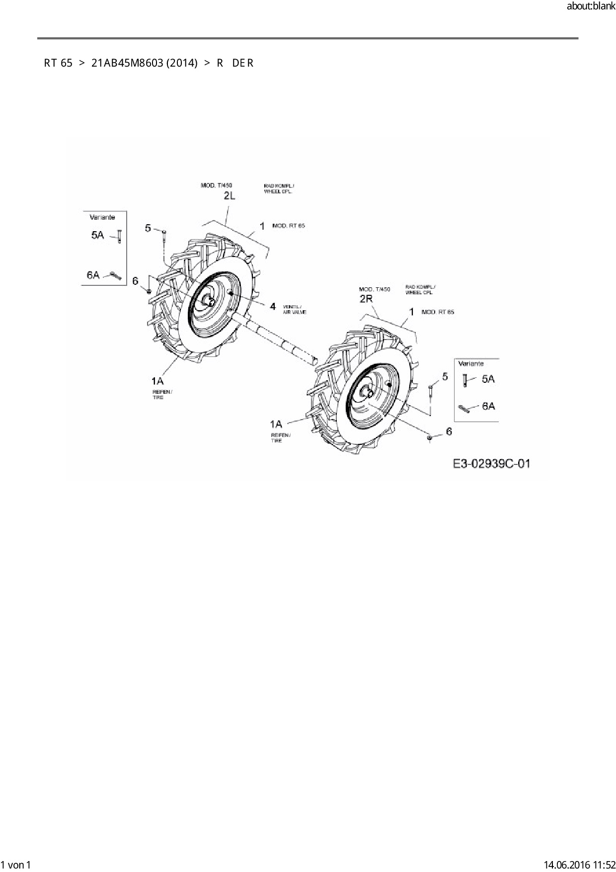 Ersatzteile für Motorhacke Cub Cadet RT 65 aus der Zeichnung Räder: