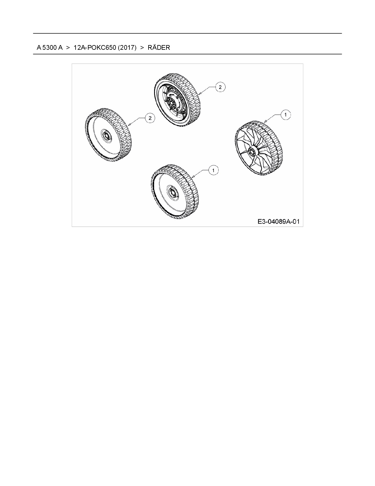 Ersatzteile für Motormäher mit Antrieb Wolf-Garten A 5300 A aus der Zeichnung Räder: