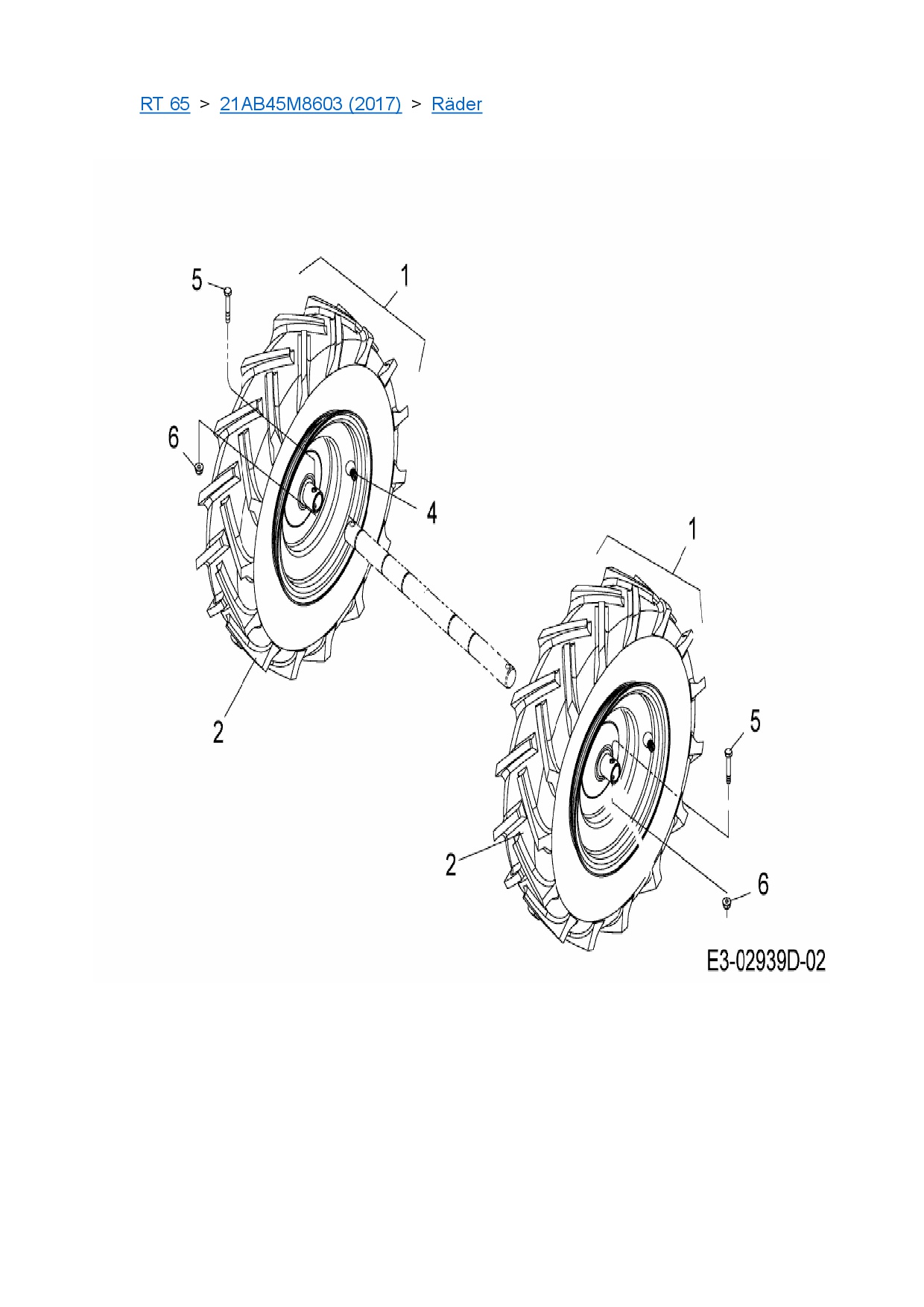 Ersatzteile für Motorhacke Cub Cadet RT 65 aus der Zeichnung Räder: