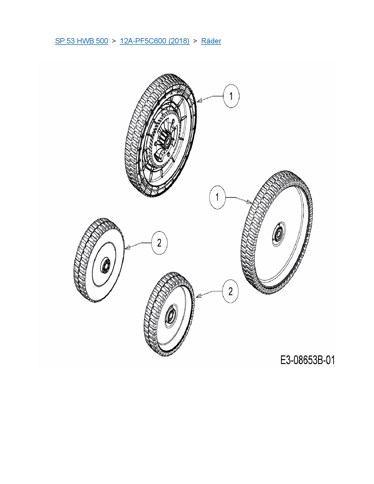 Ersatzteile für Motormäher mit Antrieb MTD SP 53 HWB 500 aus der Zeichnung Räder: