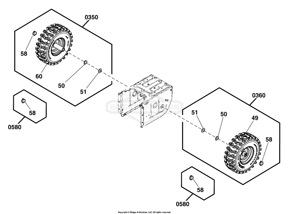 Hier finden Sie alle Ersatzteile von Murray Schneefräse 1696611-02 - L24/950, Brute 9.5 Gross TP 24" Dual Stage Snowthrower (2019) der Zeichnungsgruppe Räder: