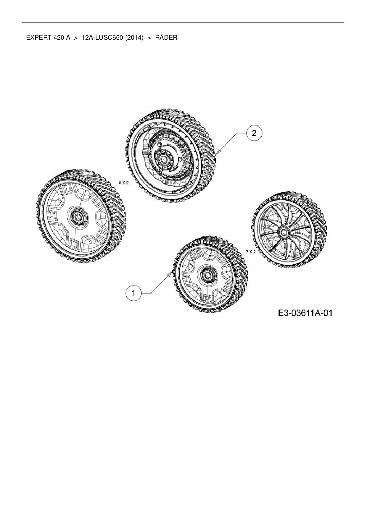 Download Ersatzteil-Zeichnung Wolf-Garten Expert Expert 420 A Zeichnung Räder (PDF-Format)