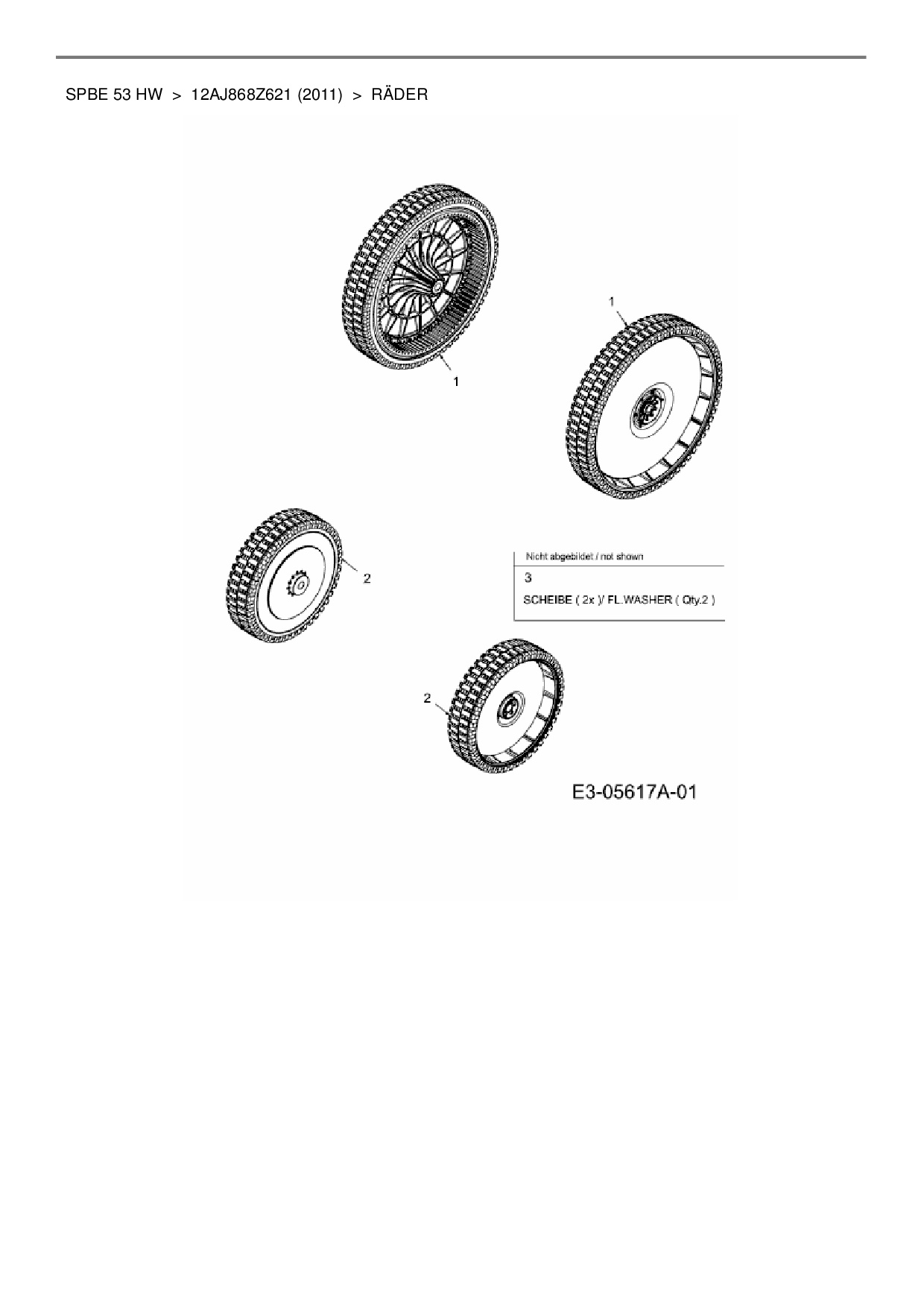 Ersatzteile für Motormäher mit Antrieb Hanseatic SPBE 53 HW aus der Zeichnung Räder: