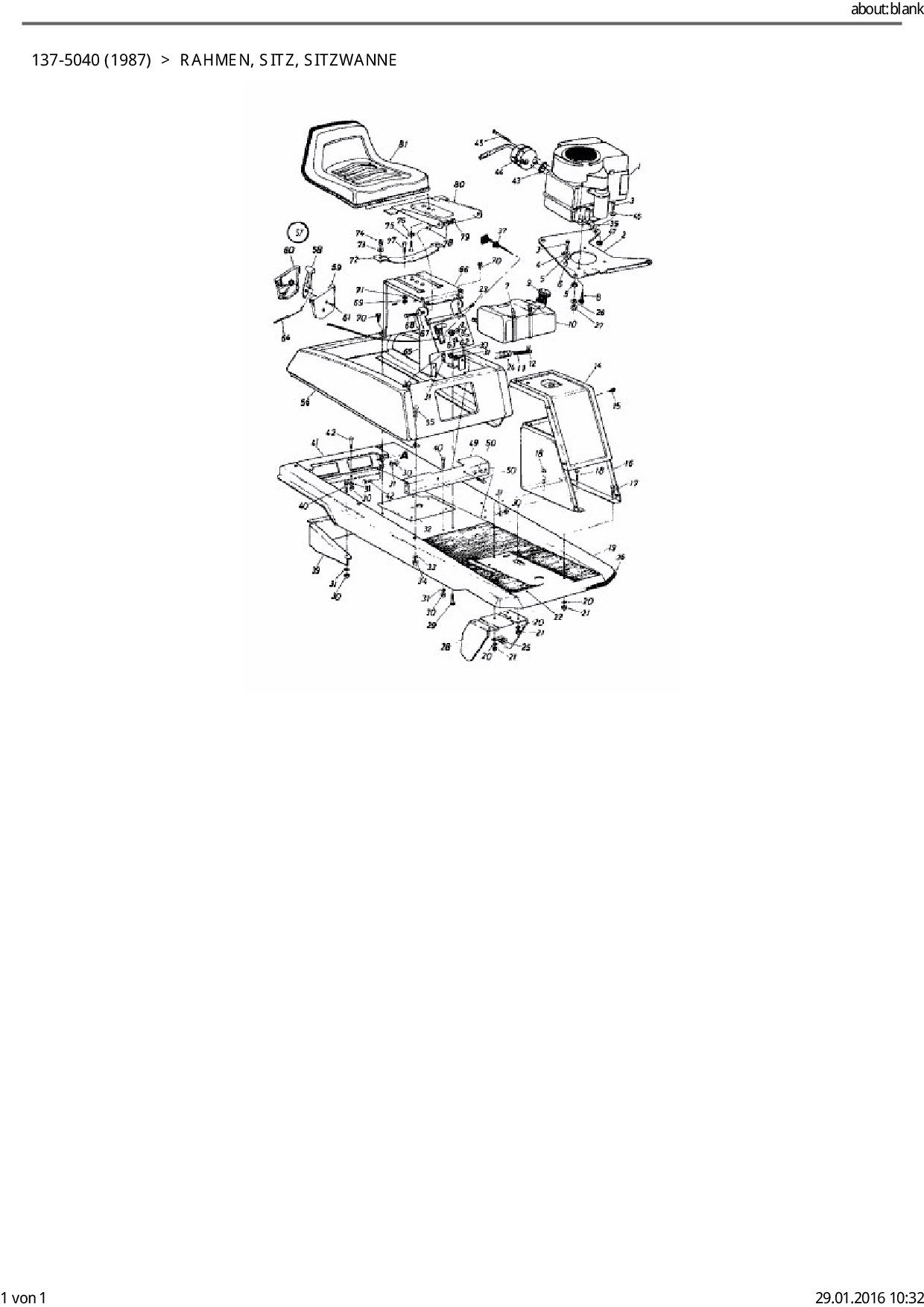 Ersatzteile für Rasentraktor Columbia 8/760 HA aus der Zeichnung Rahmen, Sitz, Sitzwanne: