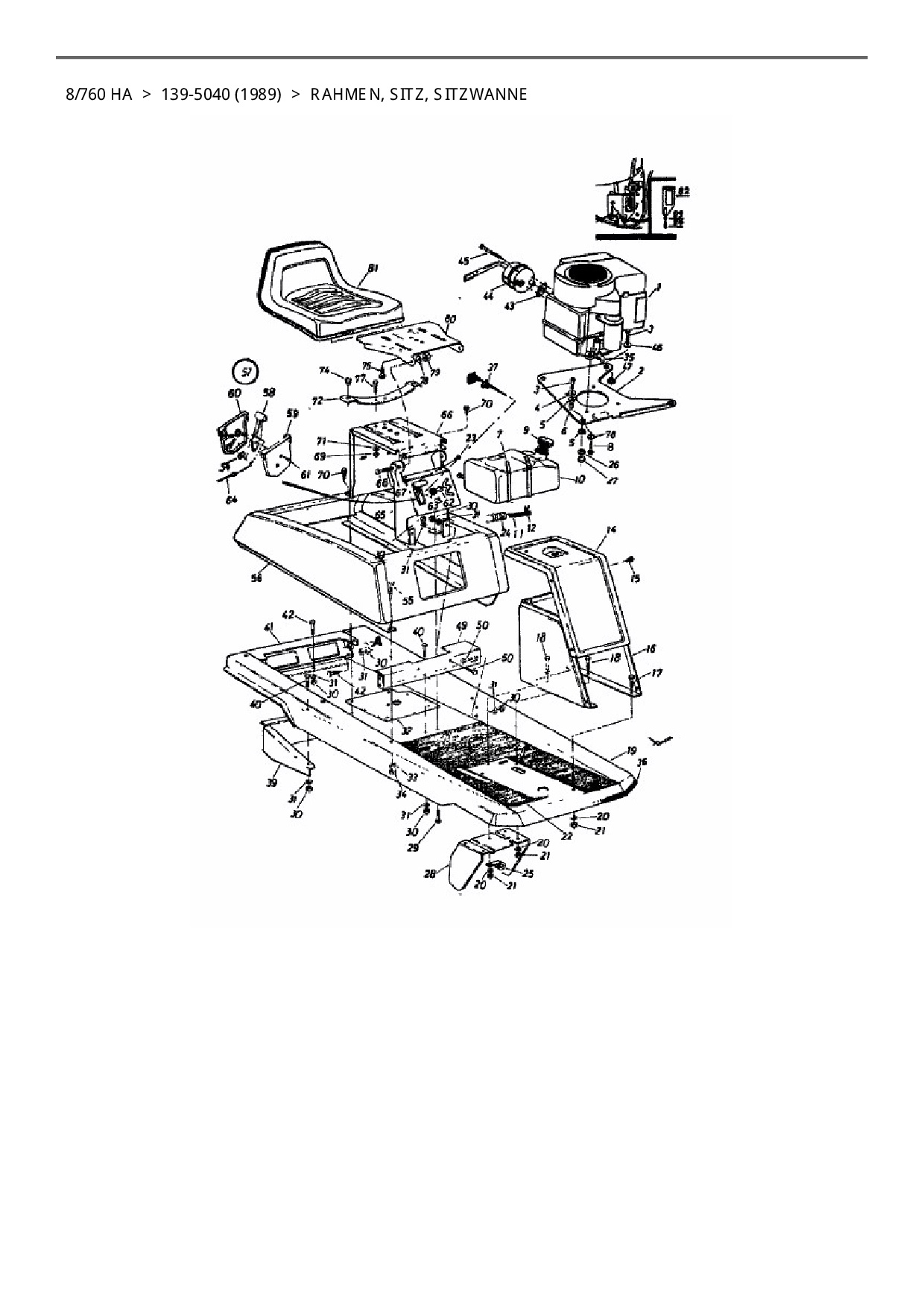 Ersatzteile für Rasentraktor Columbia 8/760 HA aus der Zeichnung Rahmen, Sitz, Sitzwanne: