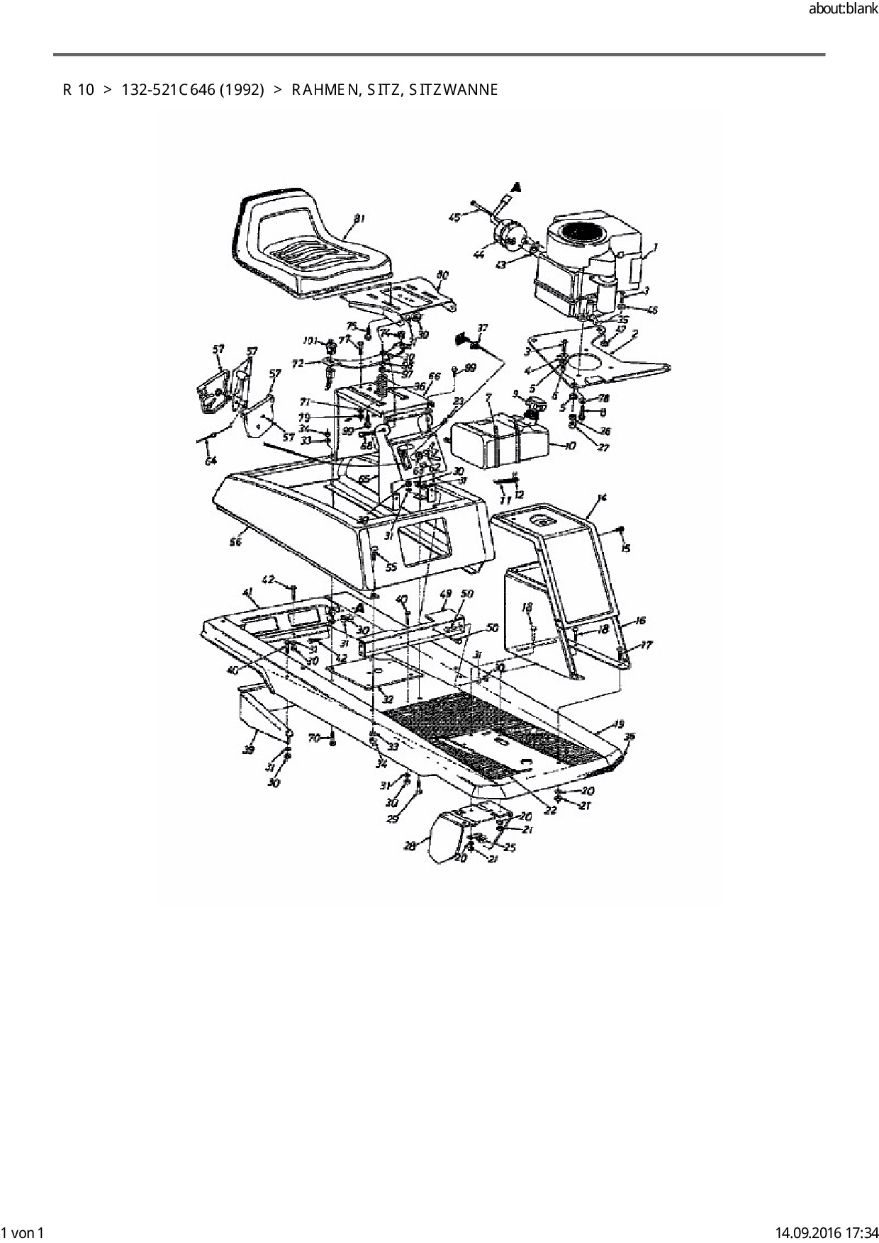 Ersatzteile für Rasentraktor Gardol R 10 aus der Zeichnung Rahmen, Sitz, Sitzwanne:
