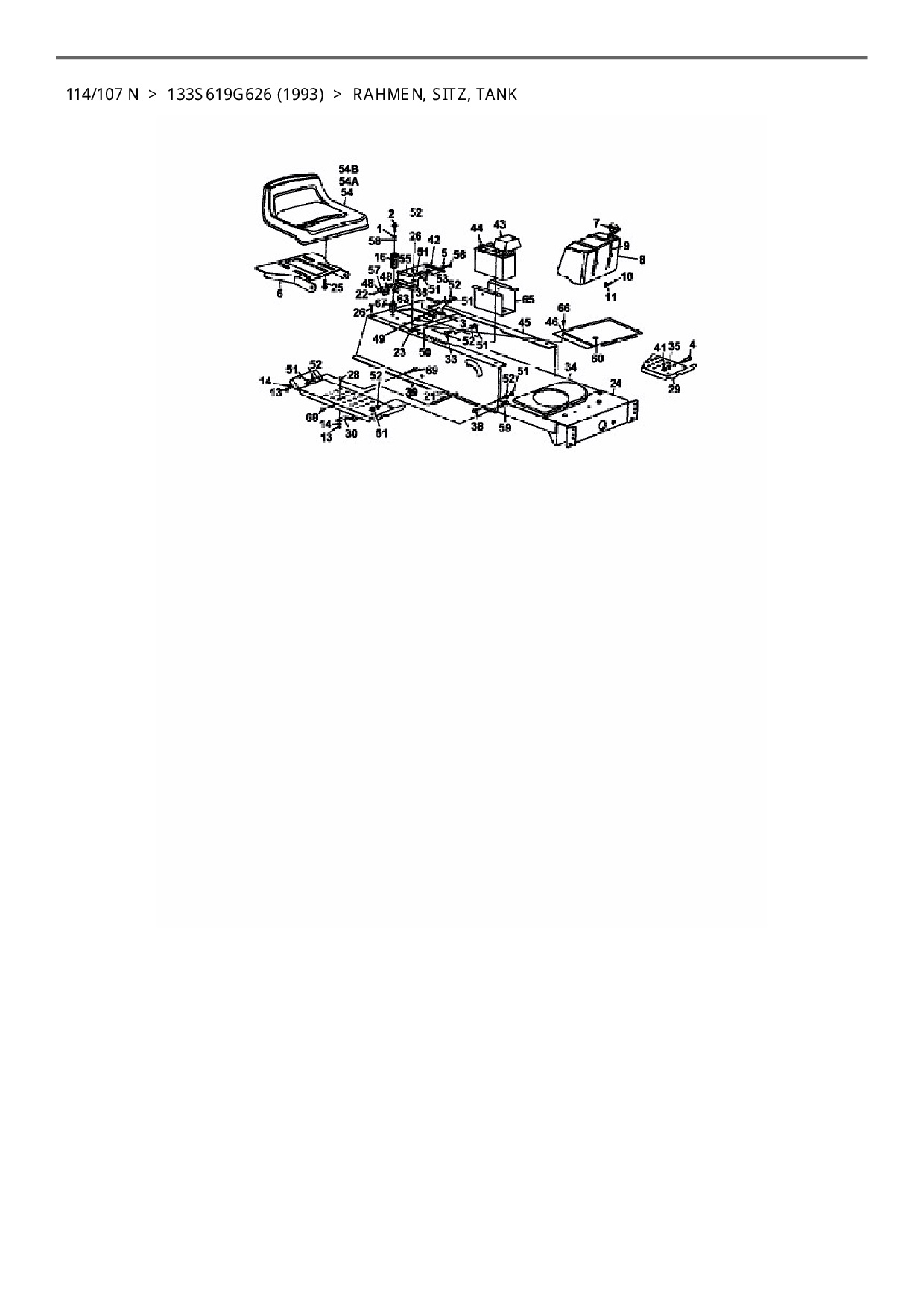 Ersatzteile für Rasentraktor Columbia 114/107 N aus der Zeichnung Rahmen, Sitz, Tank: