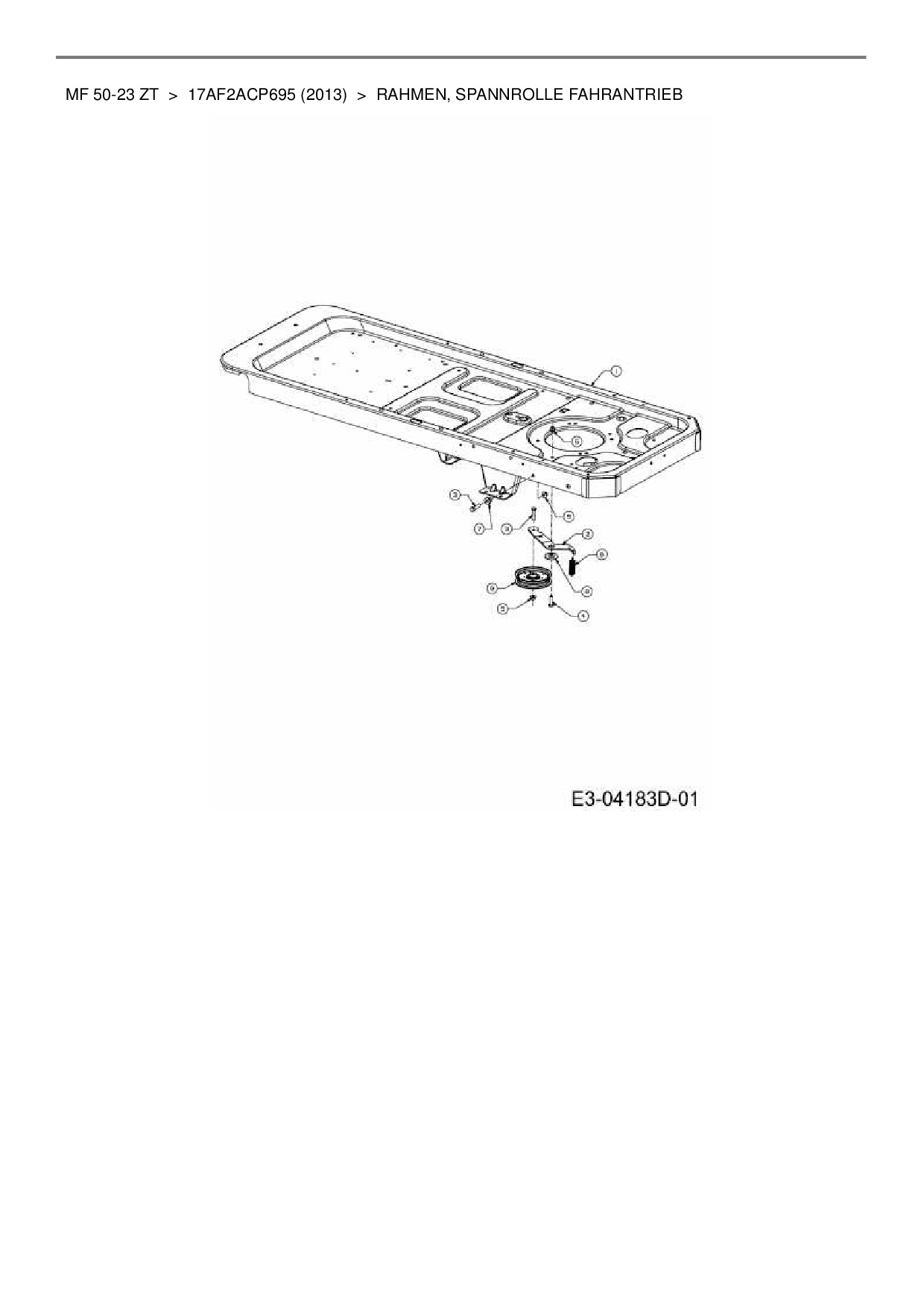 Ersatzteile für Zero Turn Massey Ferguson MF 50-23 ZT aus der Zeichnung Rahmen, Spannrolle Fahrantrieb: