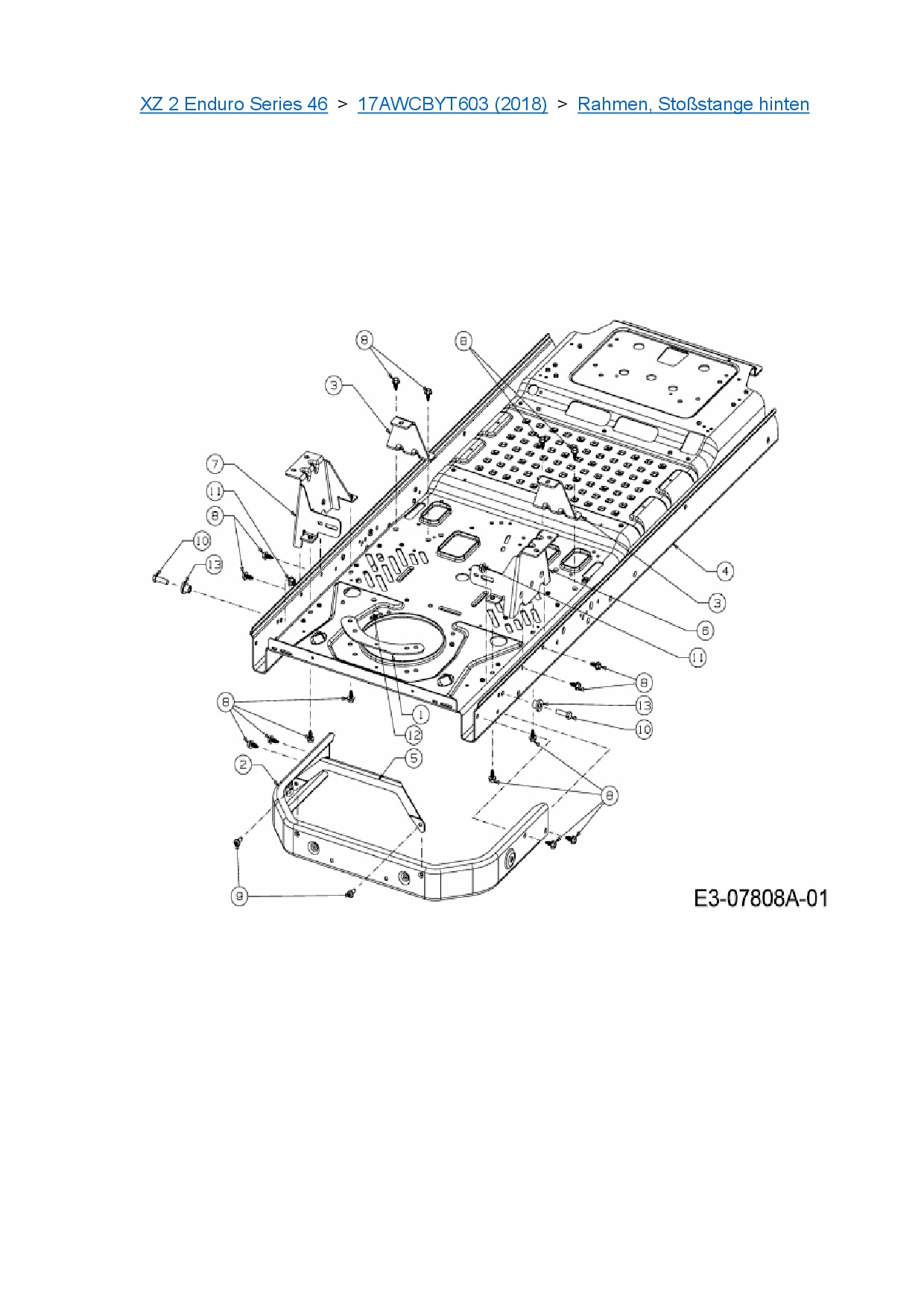 Ersatzteile für Zero Turn Cub Cadet XZ 2 Enduro Series 46 aus der Zeichnung Rahmen, Stoßstange hinten: